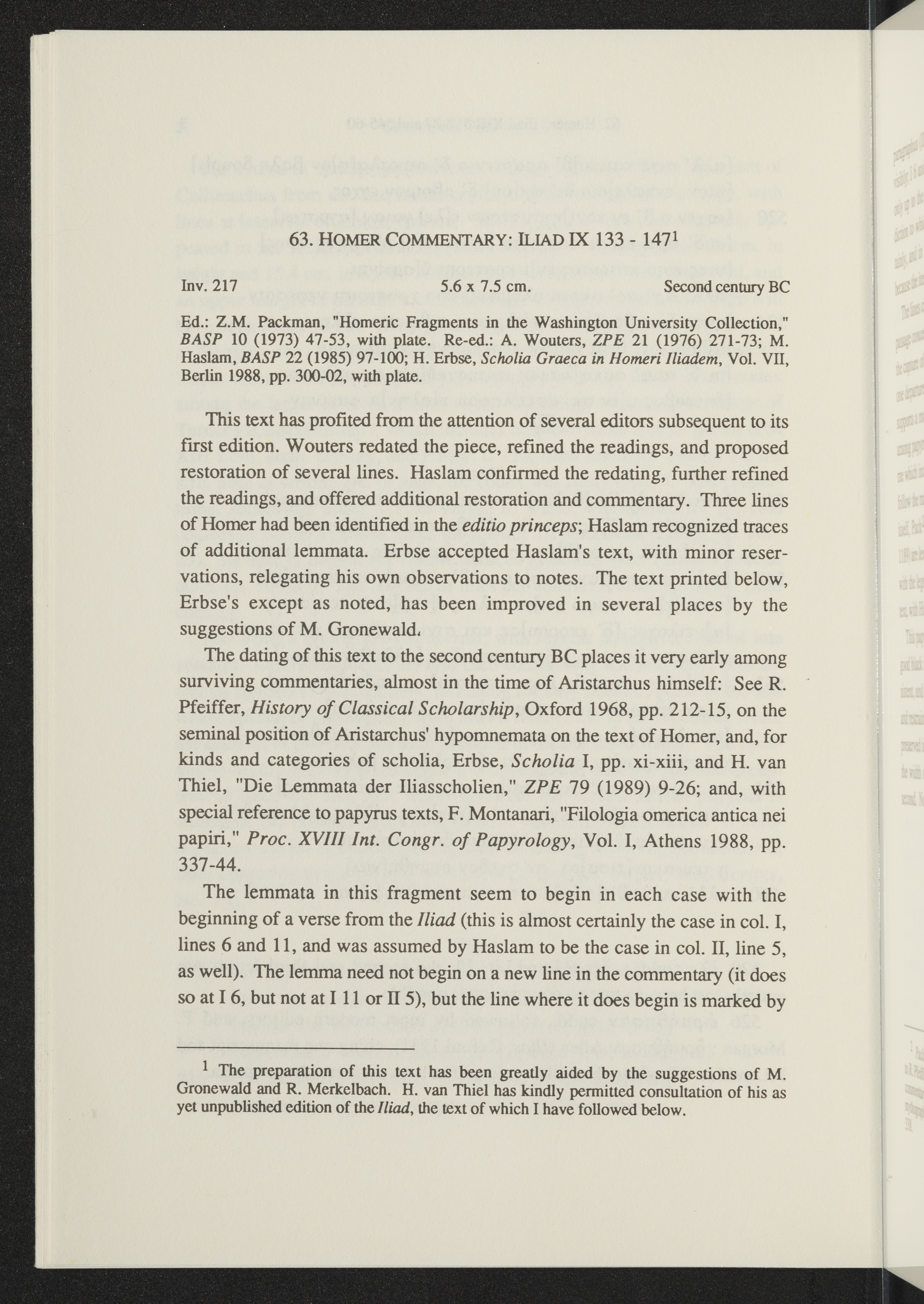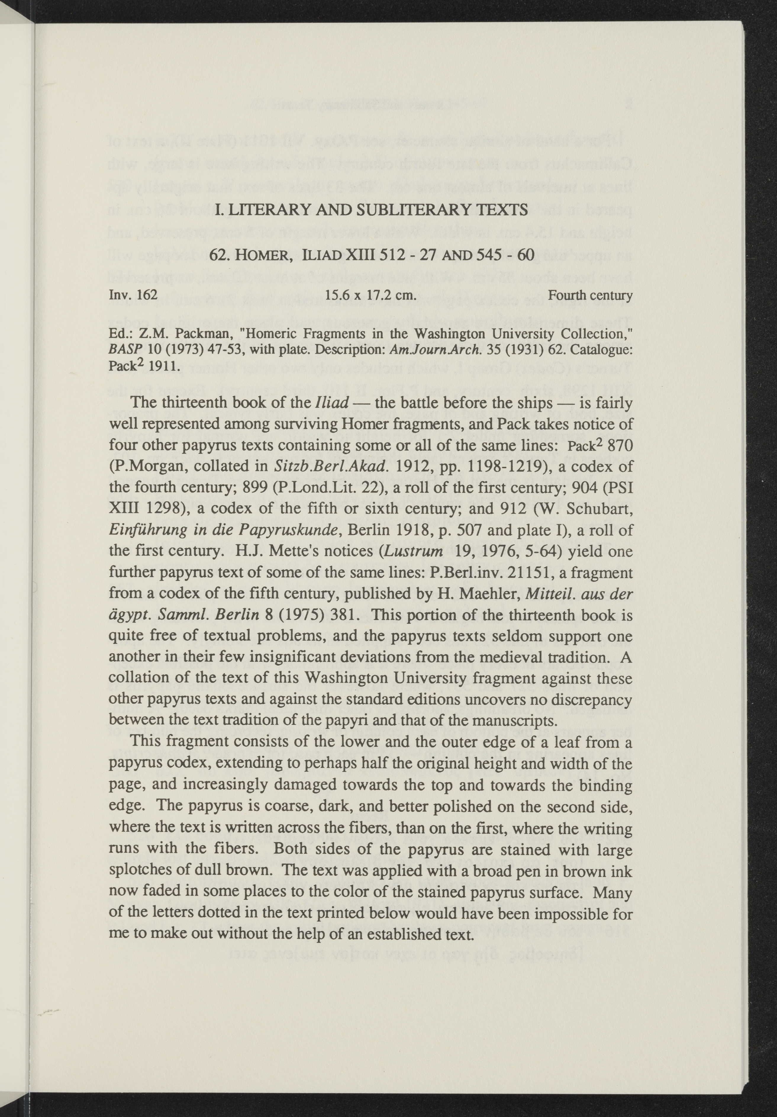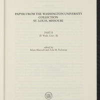 - The literary papyri from Washington University’s collection, edited by Klaus Maresch and Washington University Classics faculty member Zola M. Packman.