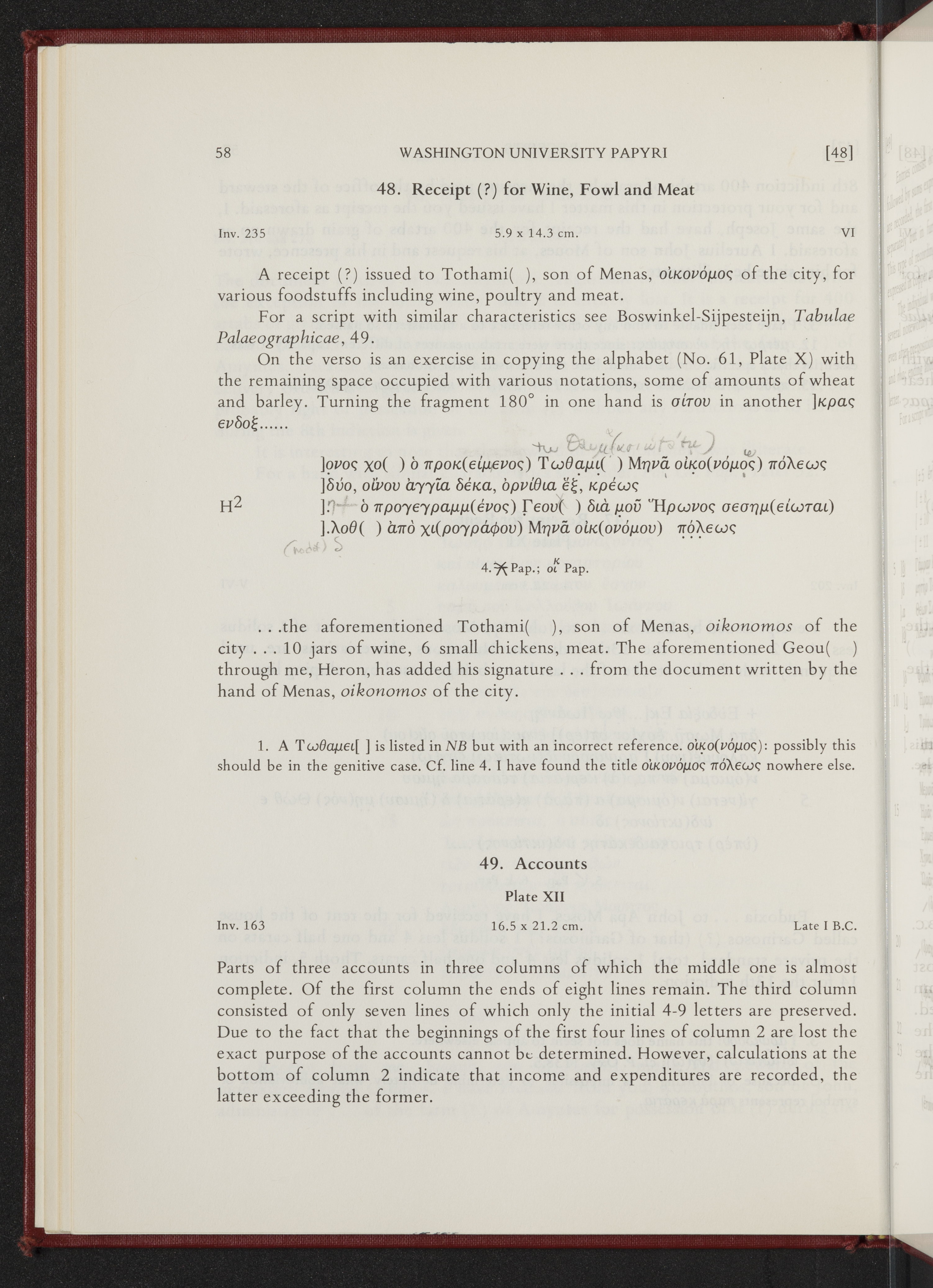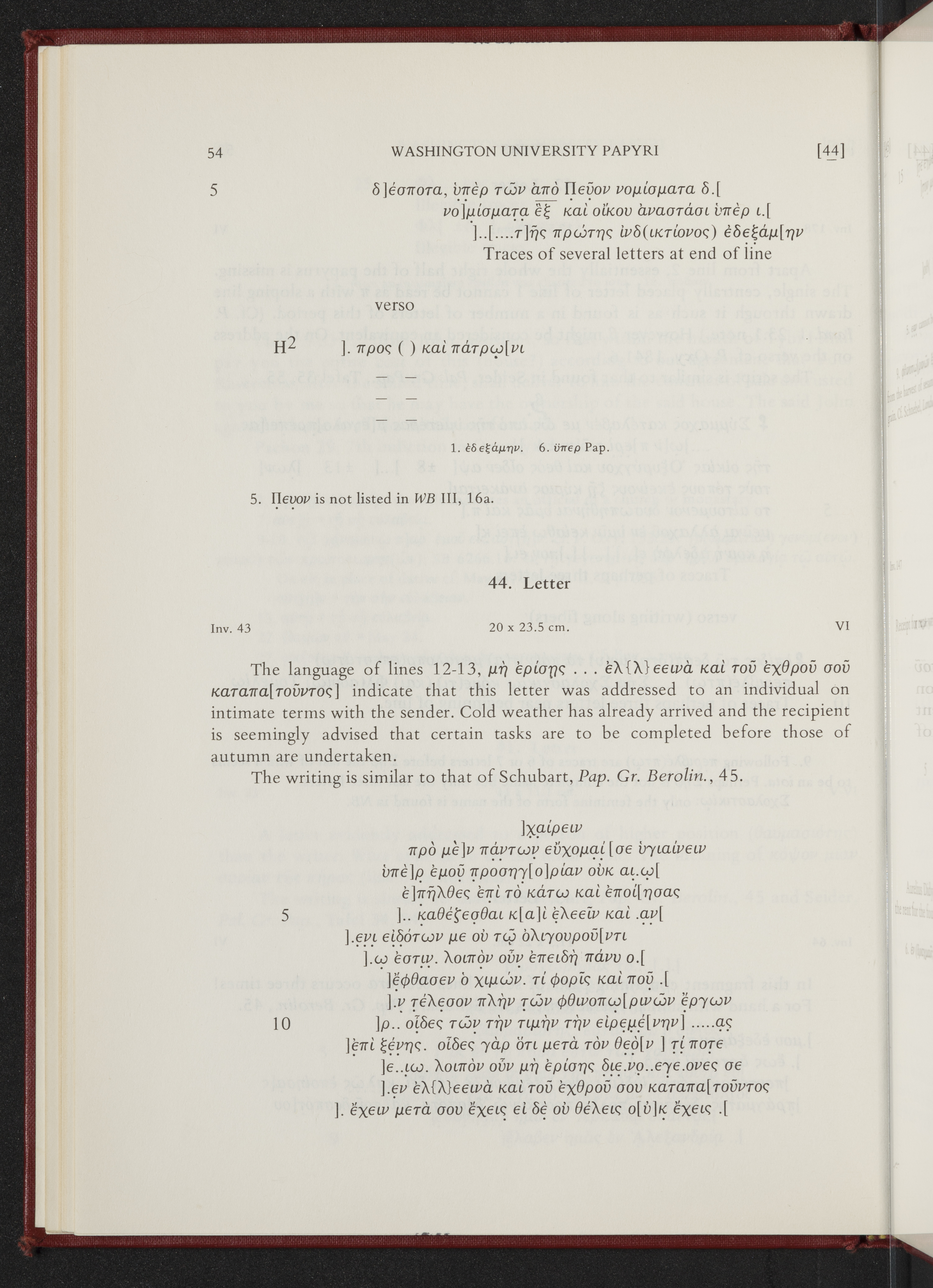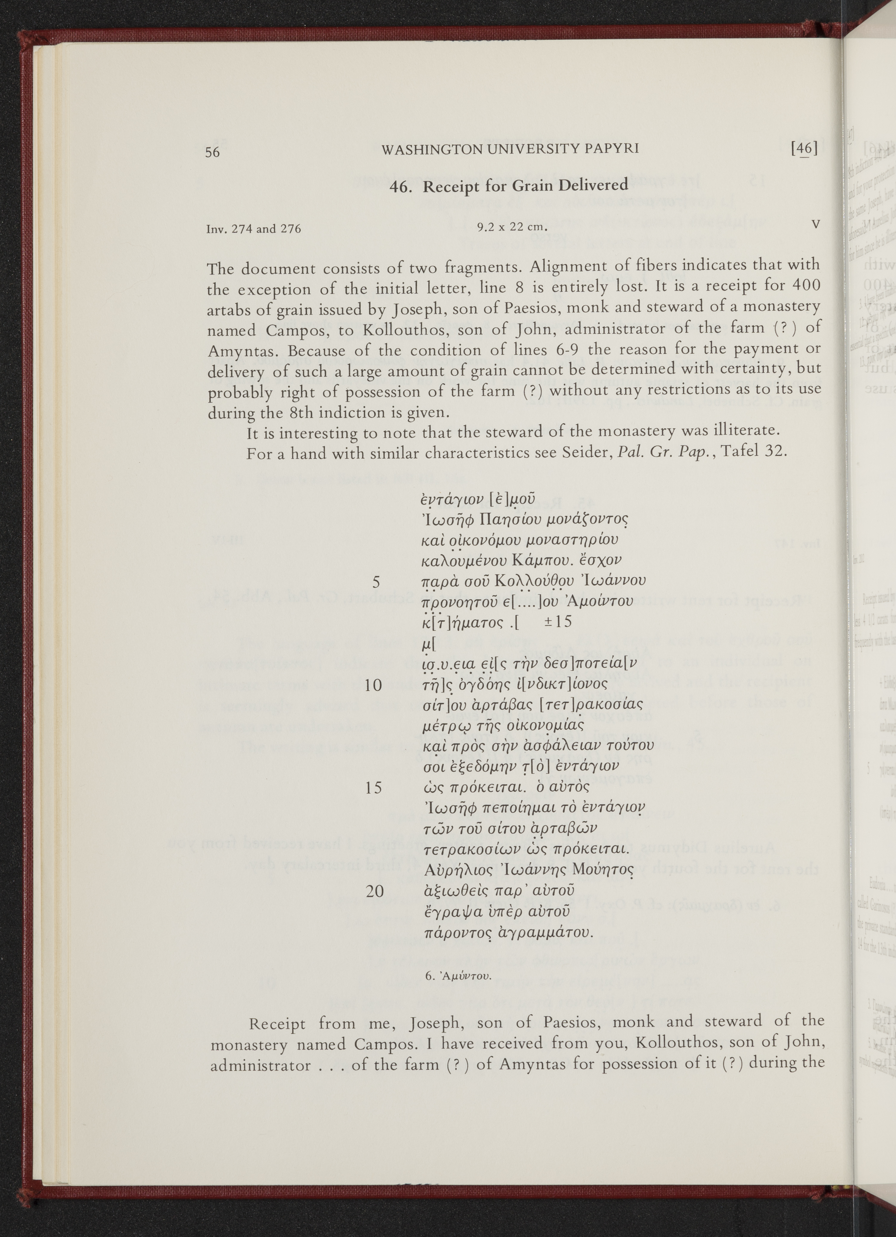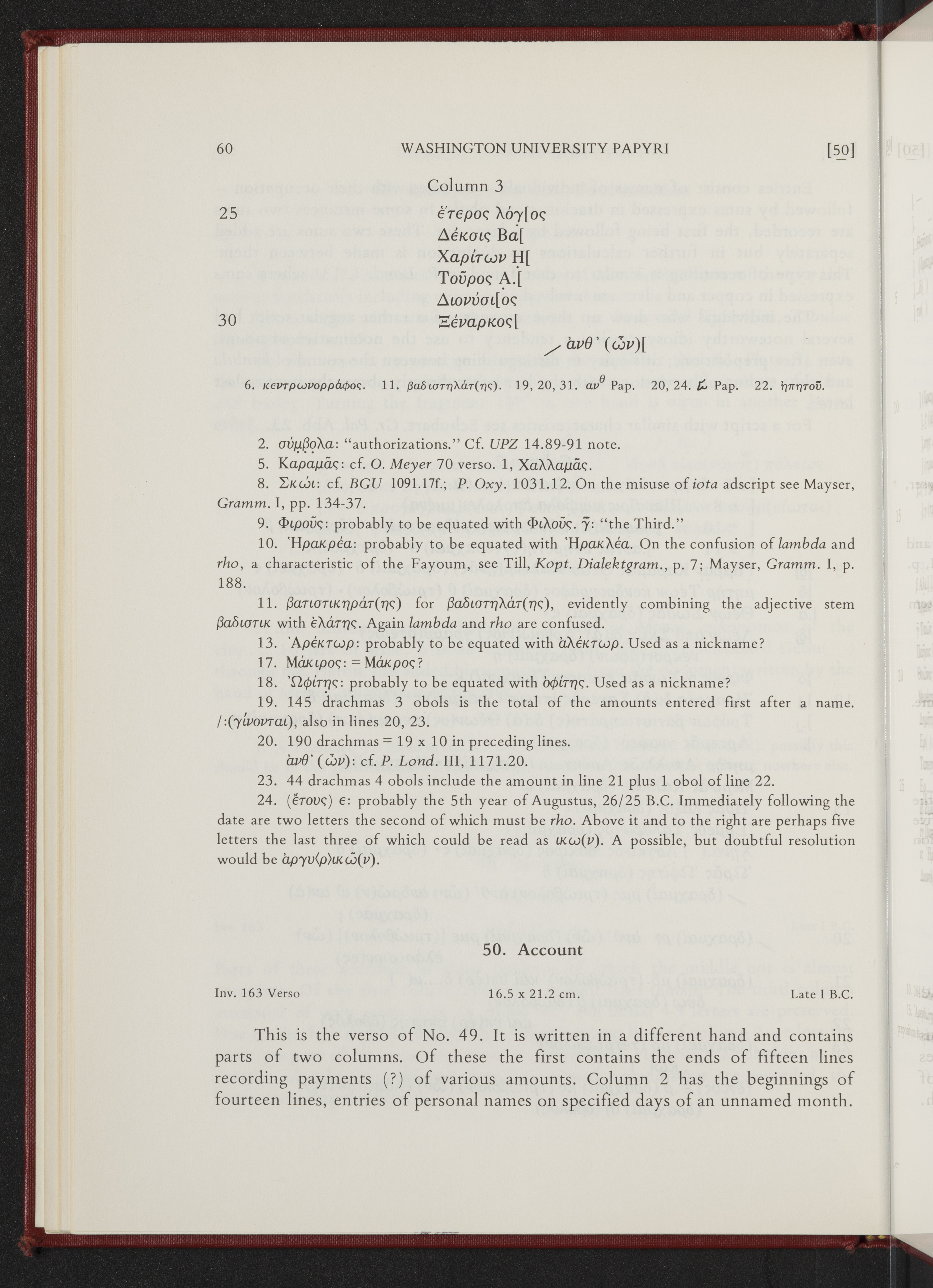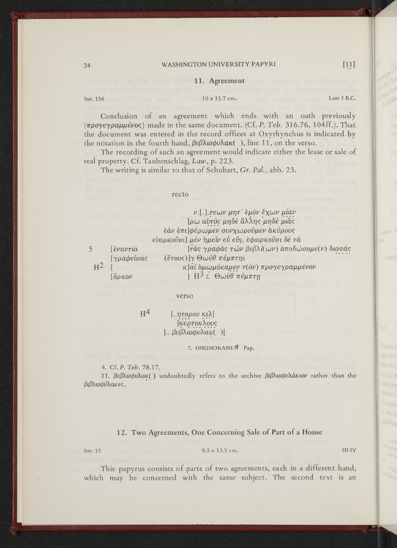 - A selection of some of the most significant documentary papyri from Washington University’s collection, edited by Verne Brinson Schuman.