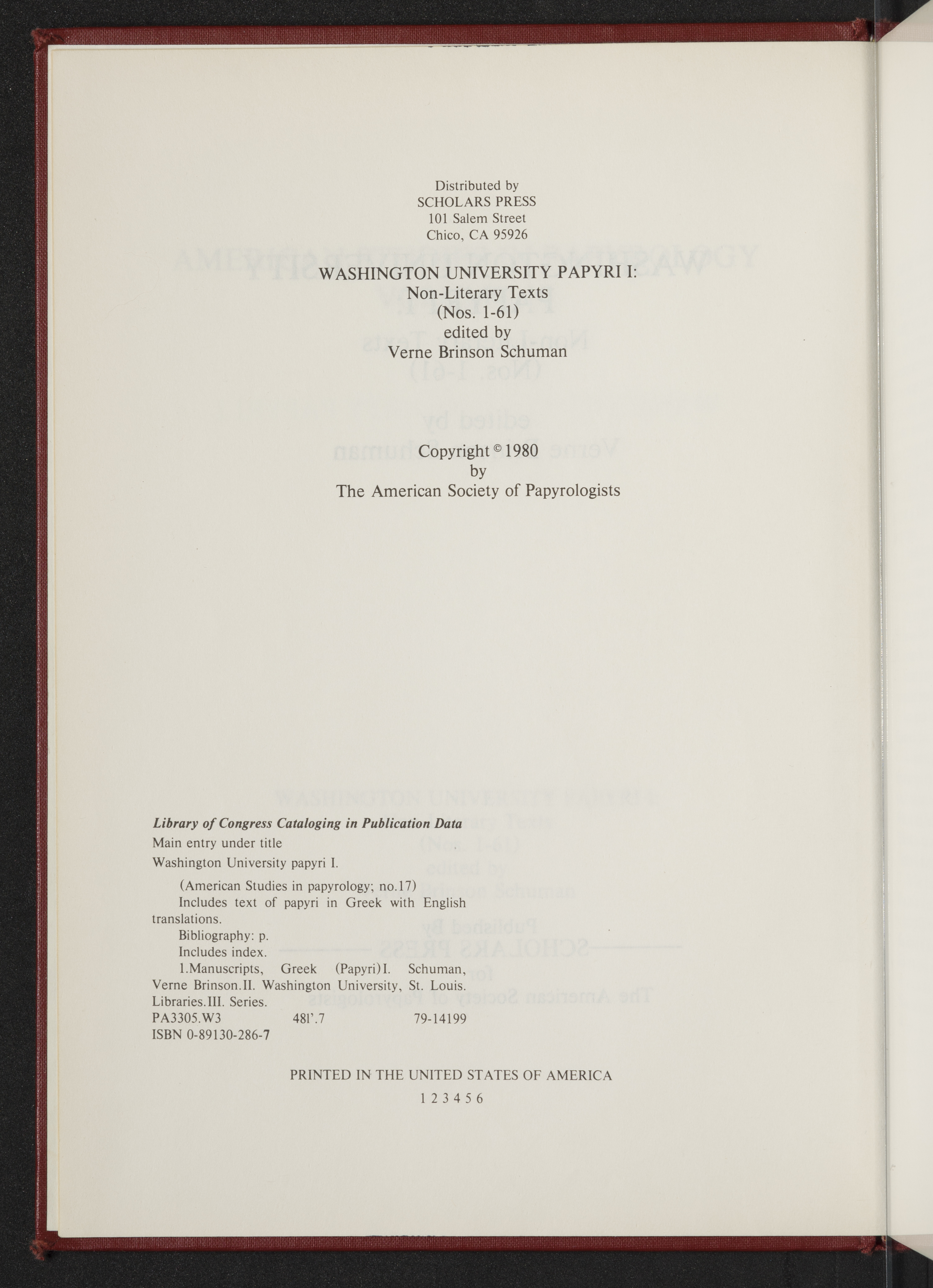 - Missoula, MT : Published by Scholars Press for the American Society of Papyrologists