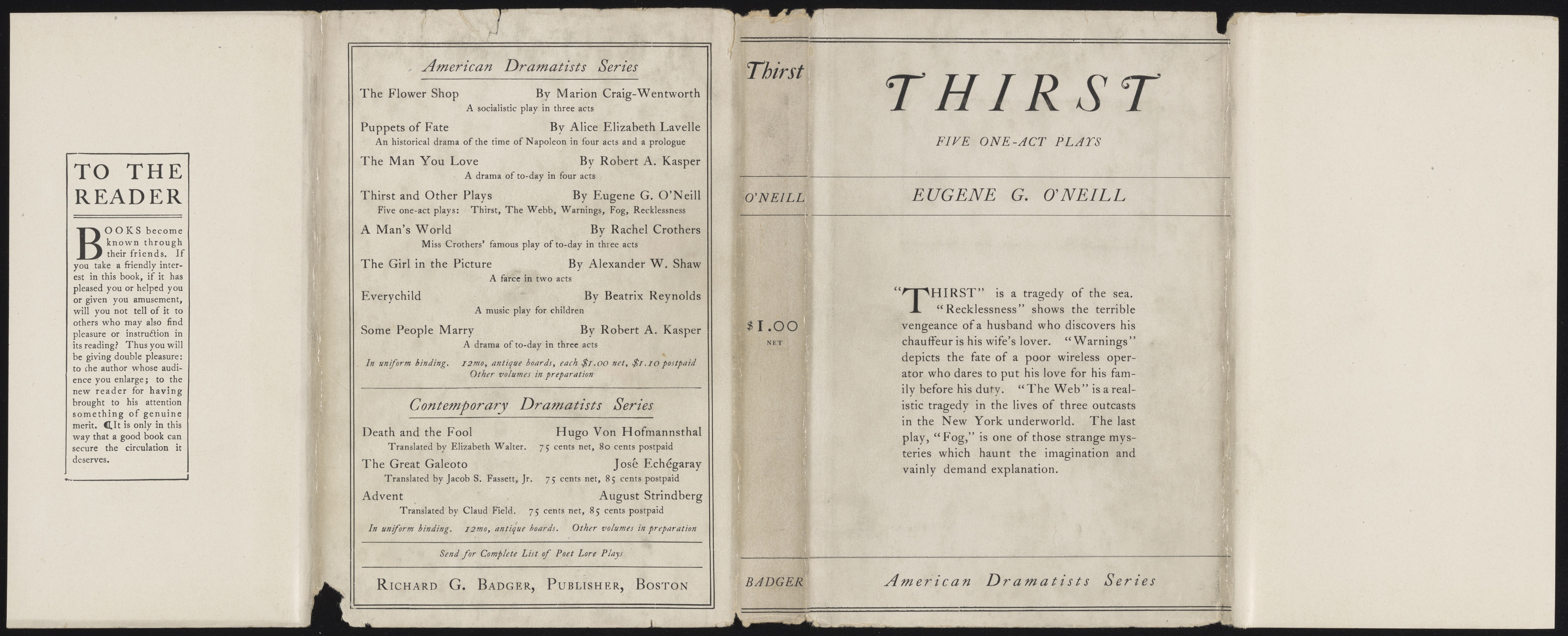 O’Neill, Eugene. 1913. “Thirst” and Other One Act Plays. eOneill.Com: An Electronic Eugene O’Neill Archive. The Gorham Press, The Assembled Playwright: Harley Hammerman's Eugene O'Neill Collection, accessed February 11, 2026, https://digitalexhibits.library.wustl.edu/s/assembled-playwright/item/48493