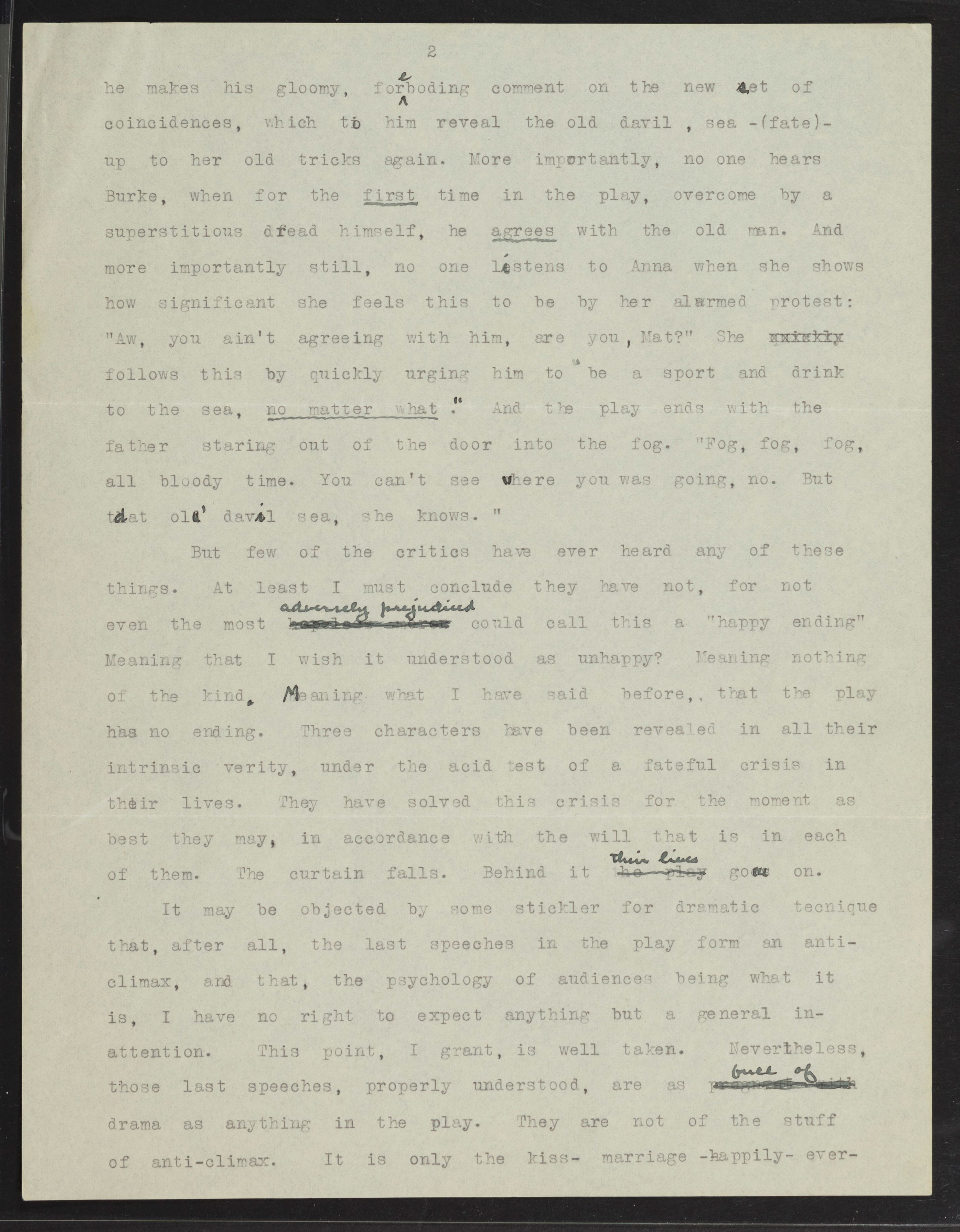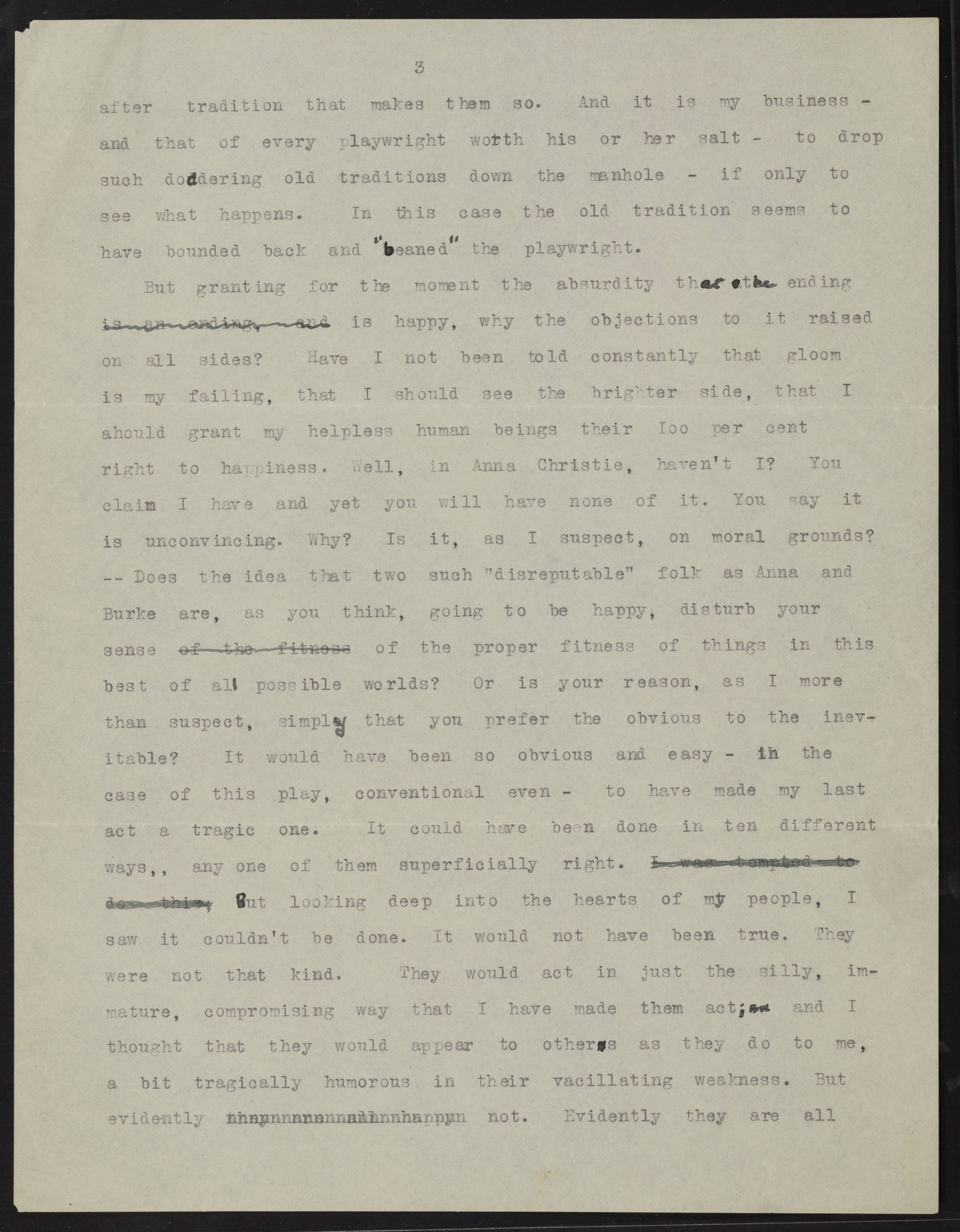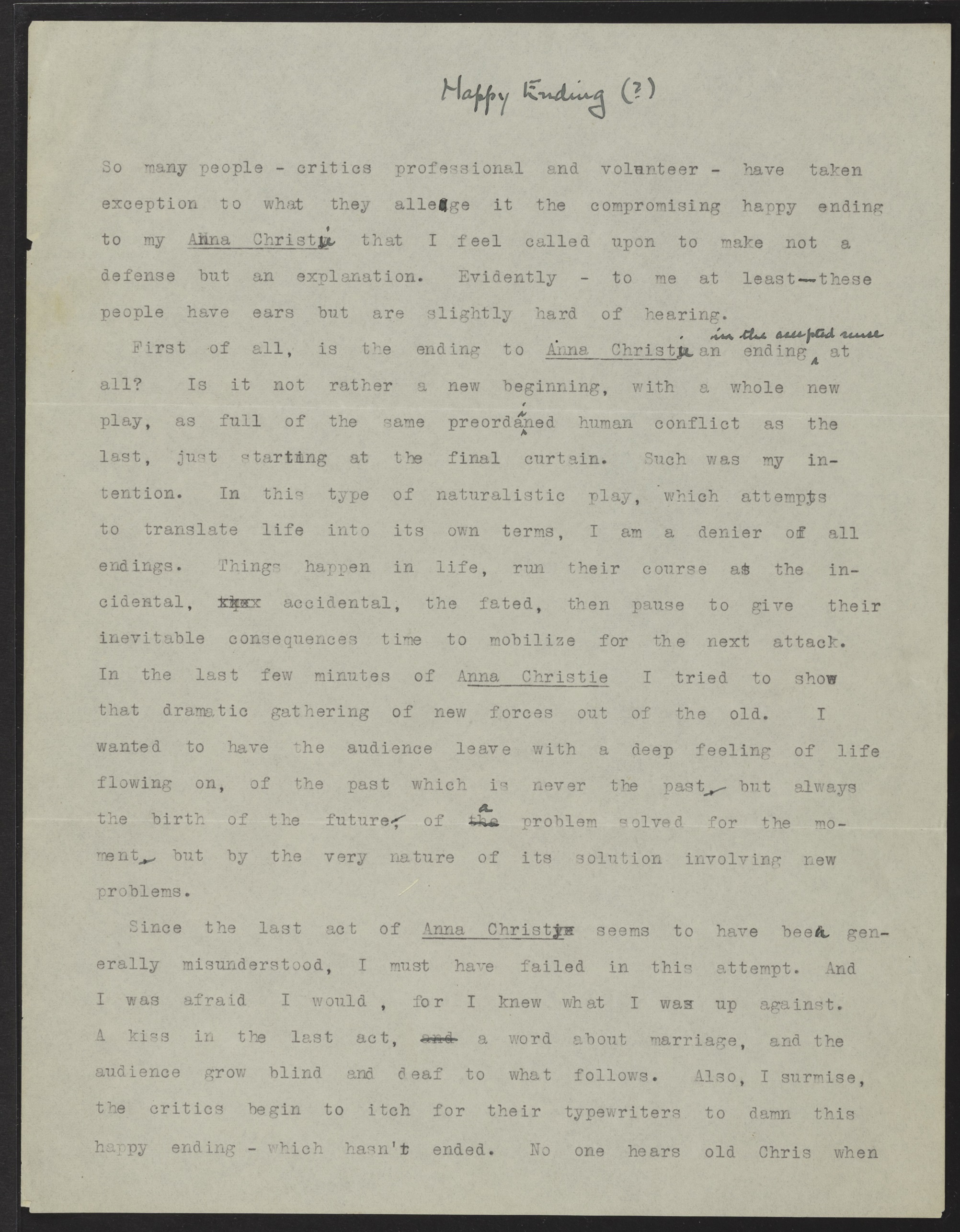 O’Neill, Eugene. 1921. "Happy Ending (?)" Typescript. eOneill.Com: An Electronic Eugene O’Neill Archive, The Assembled Playwright: Harley Hammerman's Eugene O'Neill Collection, accessed February 11, 2026, https://digitalexhibits.library.wustl.edu/s/assembled-playwright/item/48539