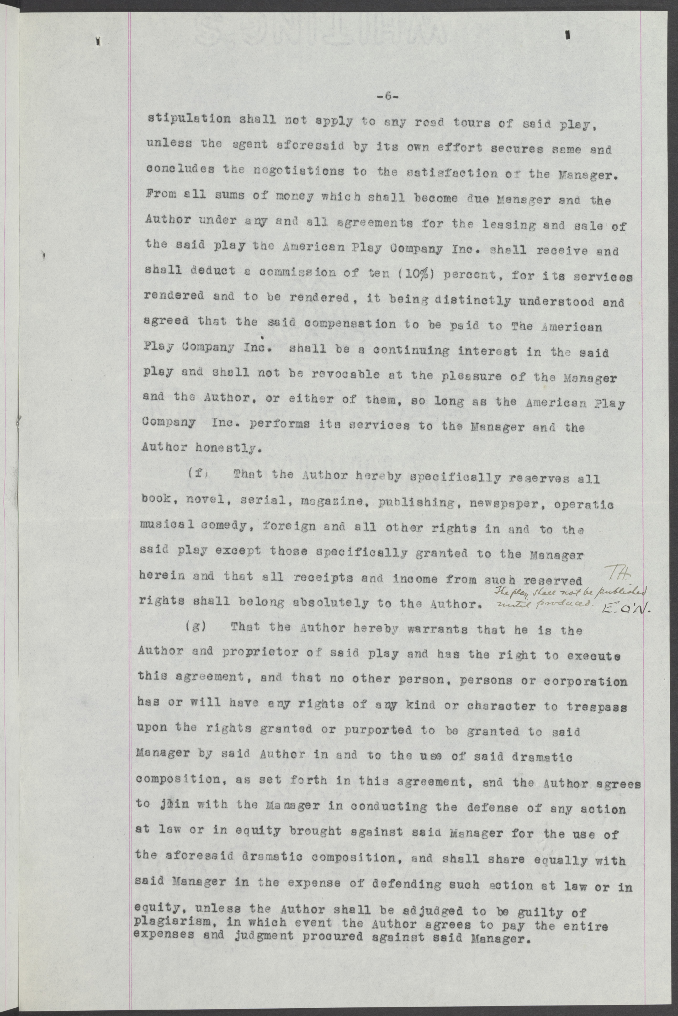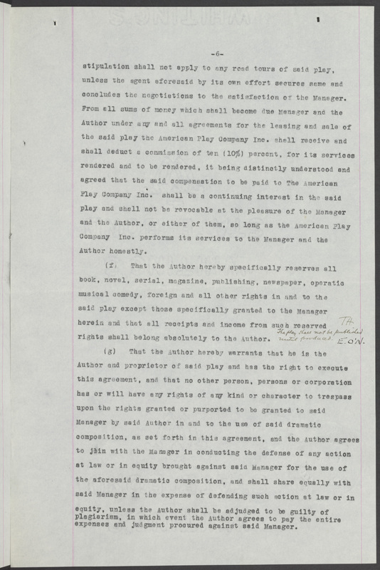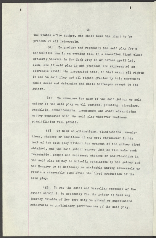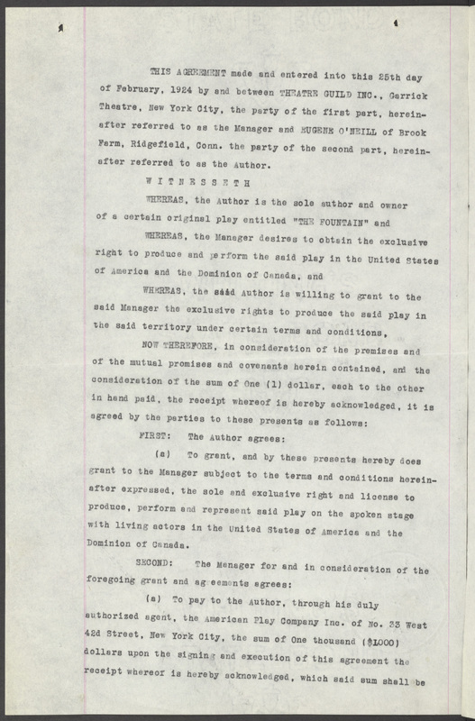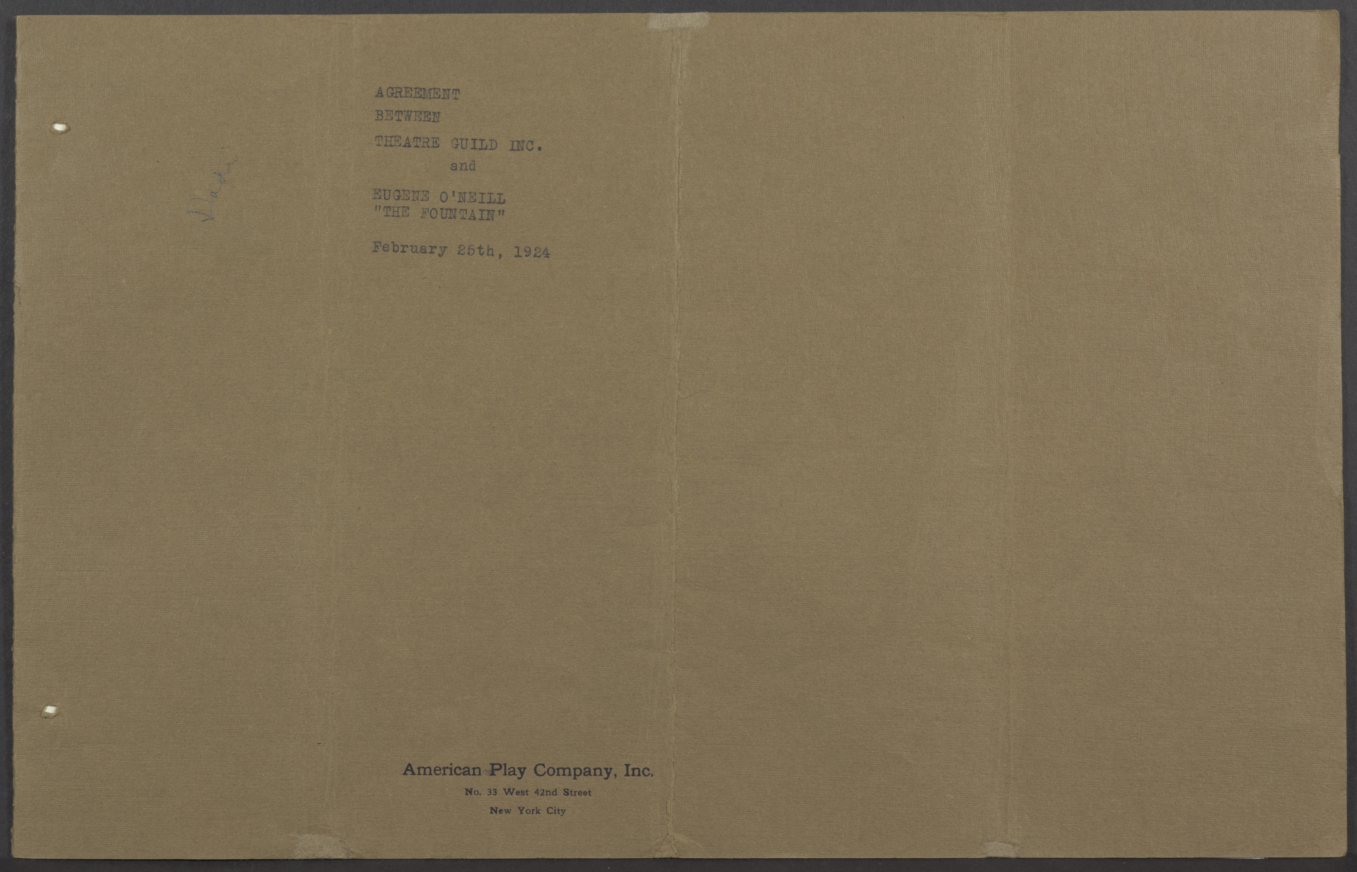 O’Neill, Eugene. 1924. The Fountain Contract. eOneill.Com: An Electronic Eugene O’Neill Archive, The Assembled Playwright: Harley Hammerman's Eugene O'Neill Collection, accessed February 11, 2026, https://digitalexhibits.library.wustl.edu/s/assembled-playwright/item/48545