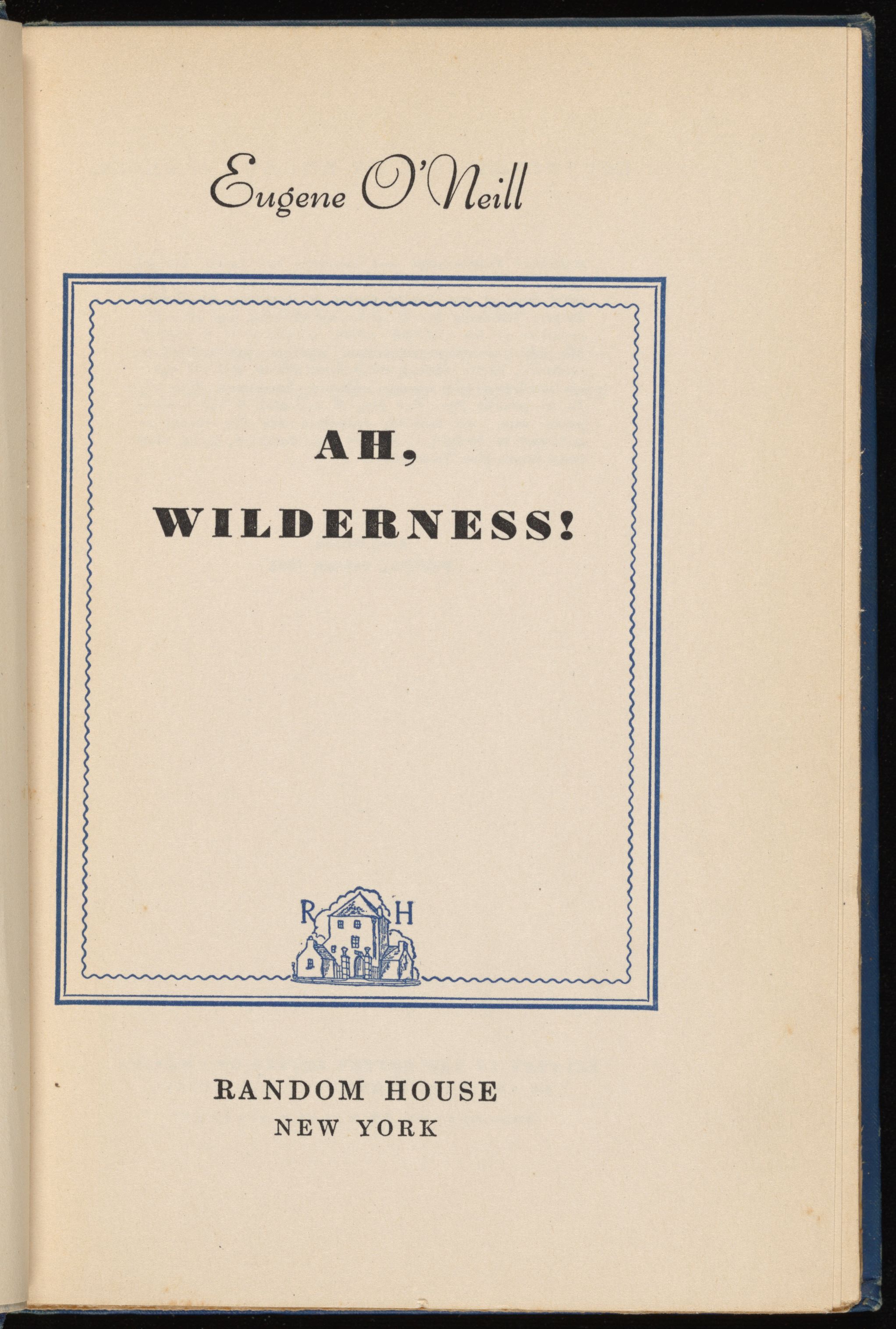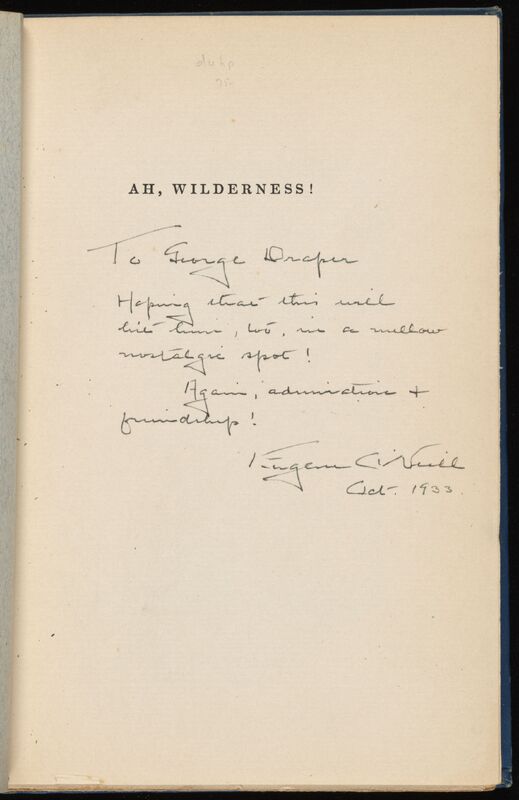 O’Neill, Eugene. 1932. Ah, Wilderness! First Trade Edition Inscribed. eOneill.Com: An Electronic Eugene O’Neill Archive. Random House, The Assembled Playwright: Harley Hammerman's Eugene O'Neill Collection, accessed February 11, 2026, https://digitalexhibits.library.wustl.edu/s/assembled-playwright/item/48574