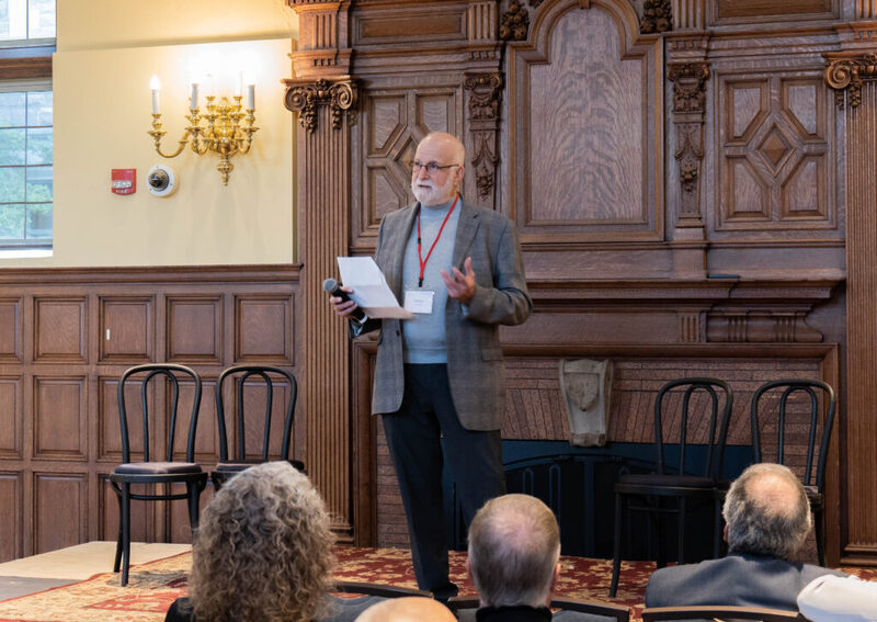 The symposium moved to Umrath Lounge for a reception before the formal opening of the Harley Hammerman Collection. Mimi Calter, vice provost and university librarian, gave welcome remarks, followed by Henry Schvey, professor of drama and comparative literature, with an introduction of Harley Hammerman. Harley’s remarks focused on the lifespan of his collection, from being introduced to O’Neill in a high school English class in 1966 to the mixed emotions of letting go of his 110 linear-foot collection to Washington University, in 2018. He concluded that the exhibition and symposium had reinvigorated his interest in promoting the collection and in making his eOneill.com website active again.