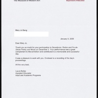 - Letter from Laura Beiles, Assistant Educator at The Museum of Modern Art, to Mary Jo Bang.