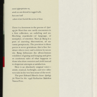 Bang, Mary Jo, 1946-, and University Press of New England. Apology for Want, University Press of New England. 1996, Some days, everything is a machine: The Poetic Practices of Mary Jo Bang, accessed March 12, 2026, https://digitalexhibits.library.wustl.edu/s/born-digital-poetry-exhibit/item/60410