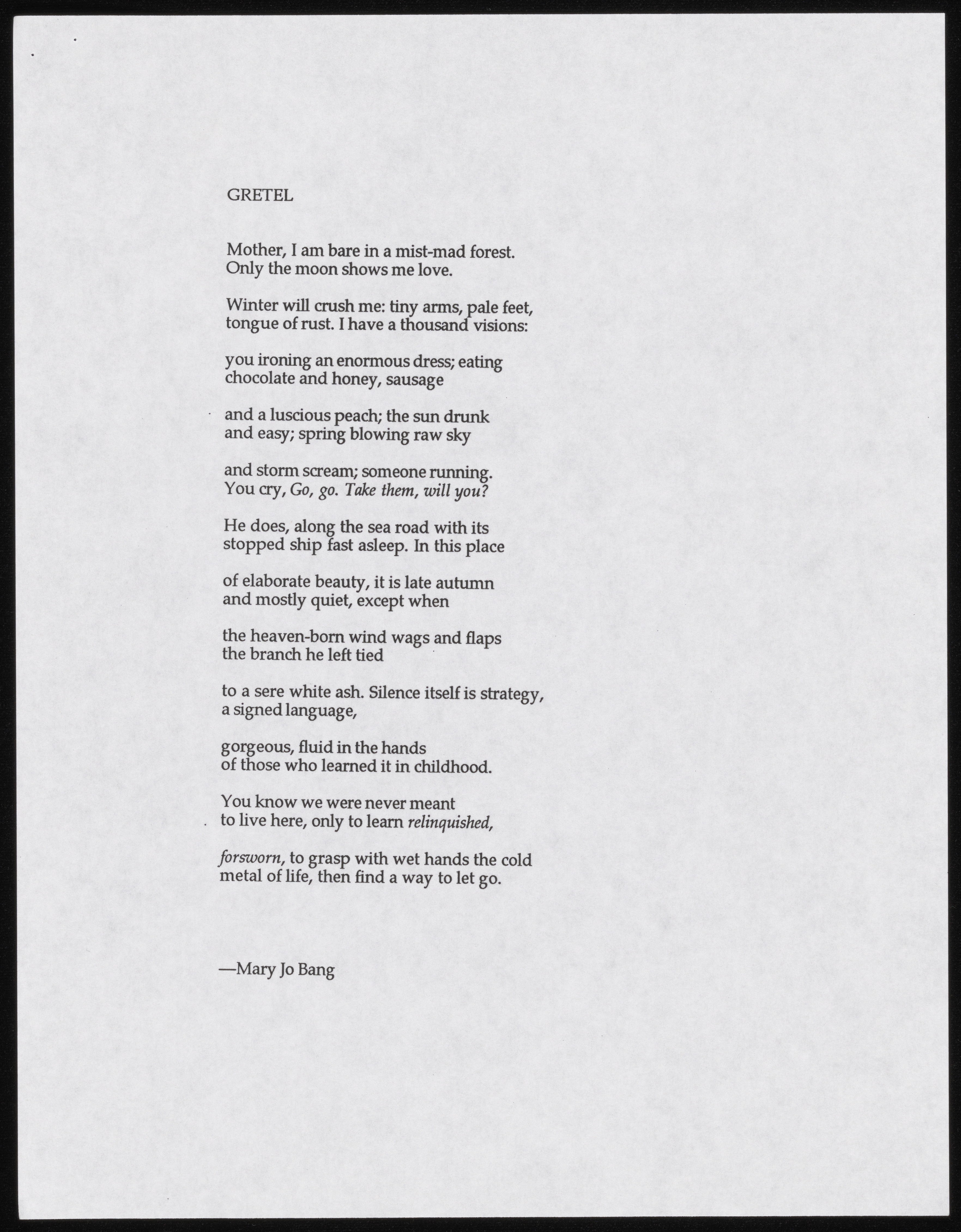 Printed Email from Lucie Brock-Broido