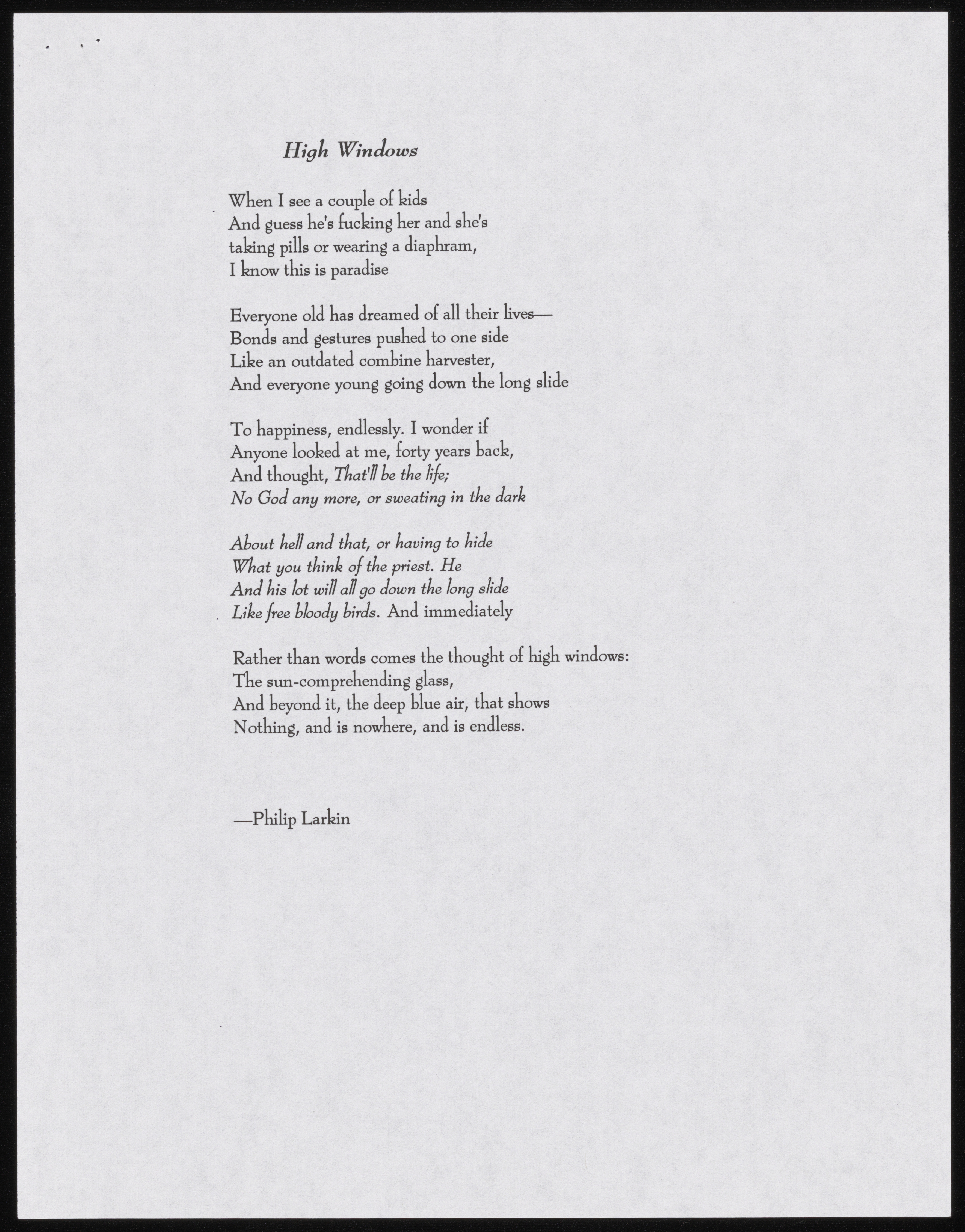 Printed Email from Lucie Brock-Broido