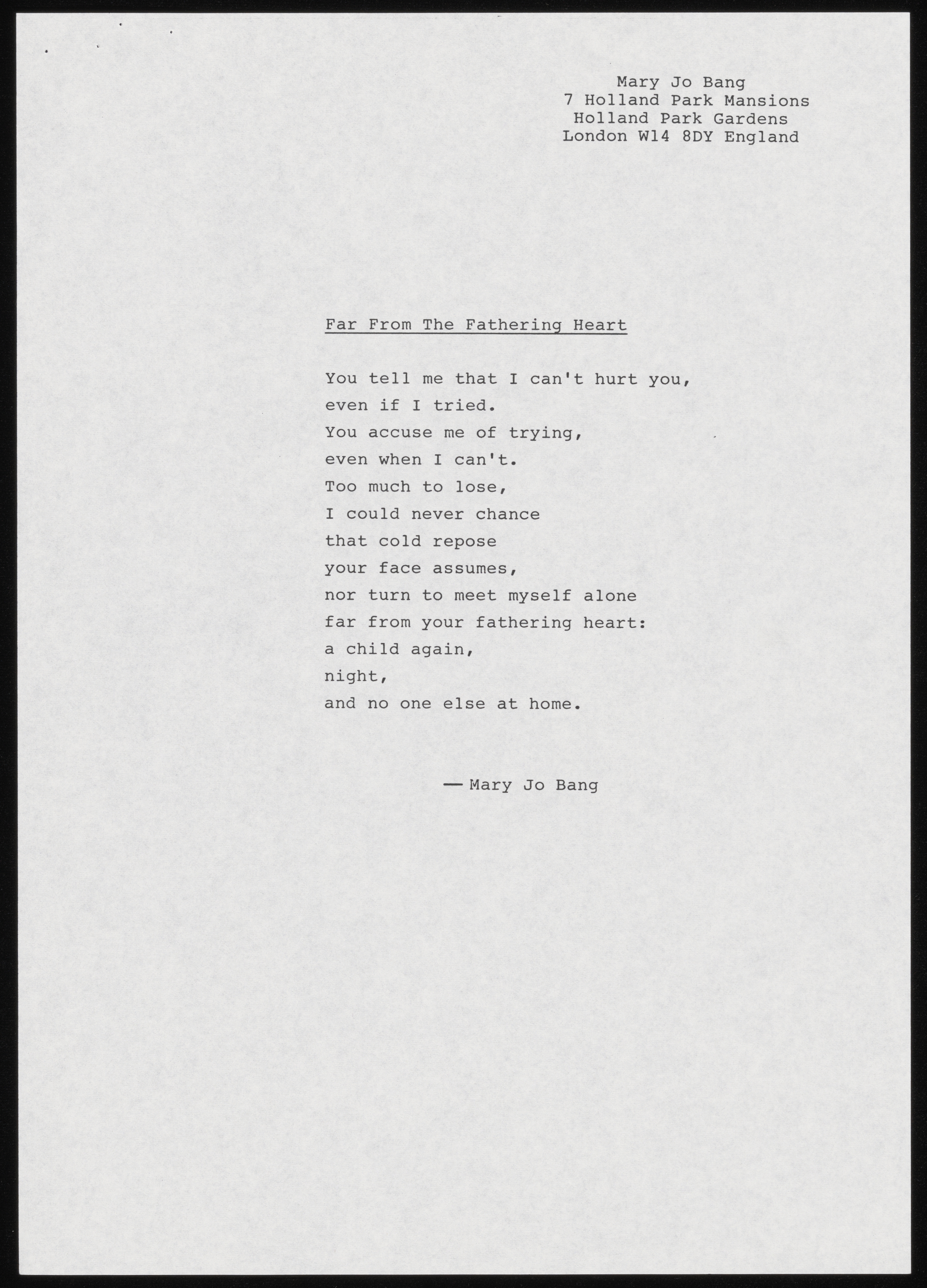 Printed Email from Lucie Brock-Broido