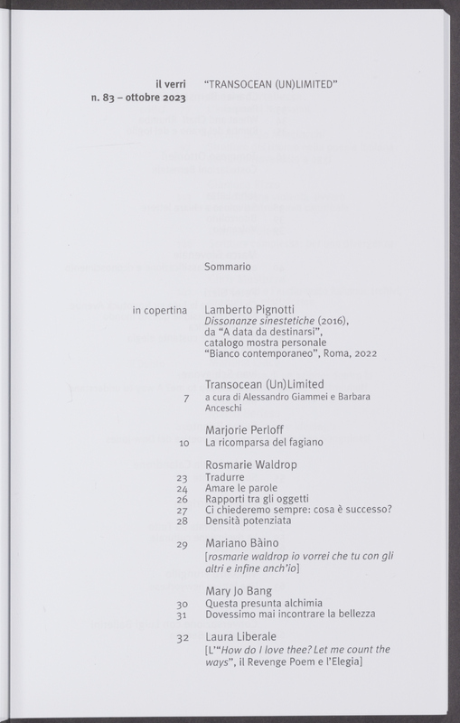 Literary Journal, il verri: Transoceanic (Un)Limited