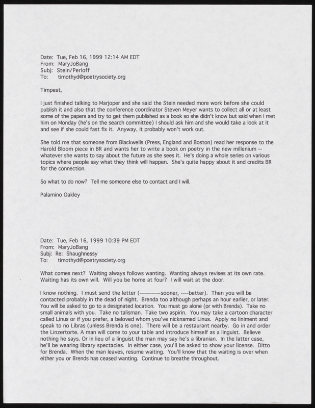 Printed Emails between Bang and Mark Bibbins