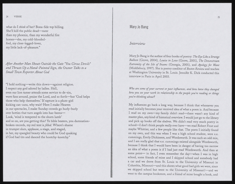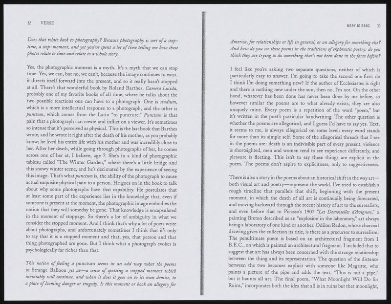 Bang reflects on her artistic beginnings in Verse Magazine, highlighting the interplay of photography and poetry.