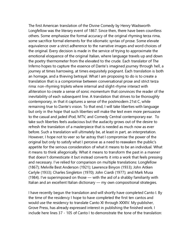 Description of translating Dante