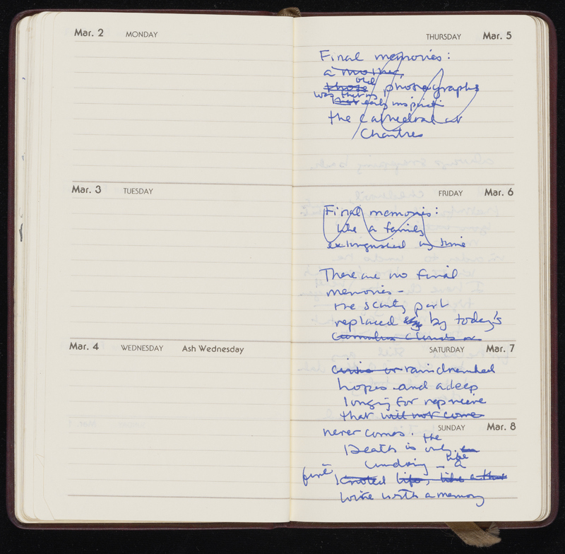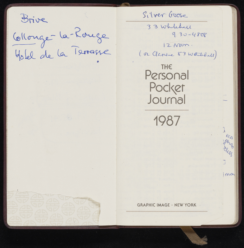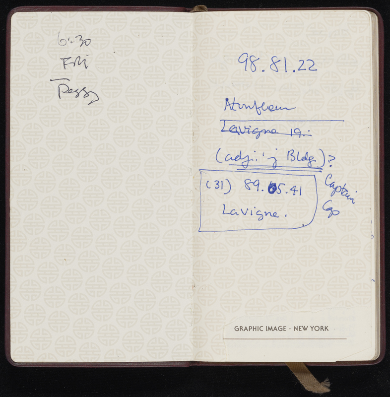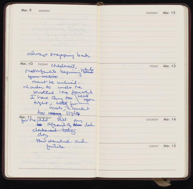 Personal calendar with Bang’s initials. Includes addresses, dates, and a handwritten poem draft.