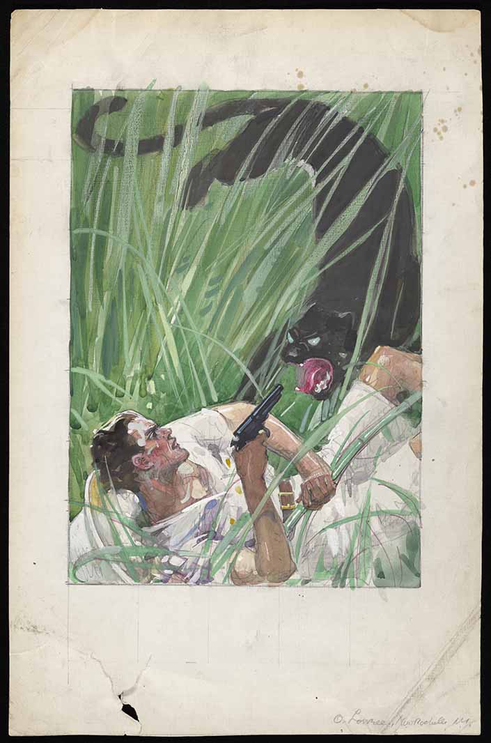 Lowell, Orson Byron. 2026. Pulp Cover by Orson B. Lowell, ca.1930. Gouache (technique). Dowd Illustration Research Archive, Domesticated Pulp: Archie Publications and the Comics Code, accessed March 28, 2026, https://digitalexhibits.library.wustl.edu/s/domesticated-pulp-archie/item/48301