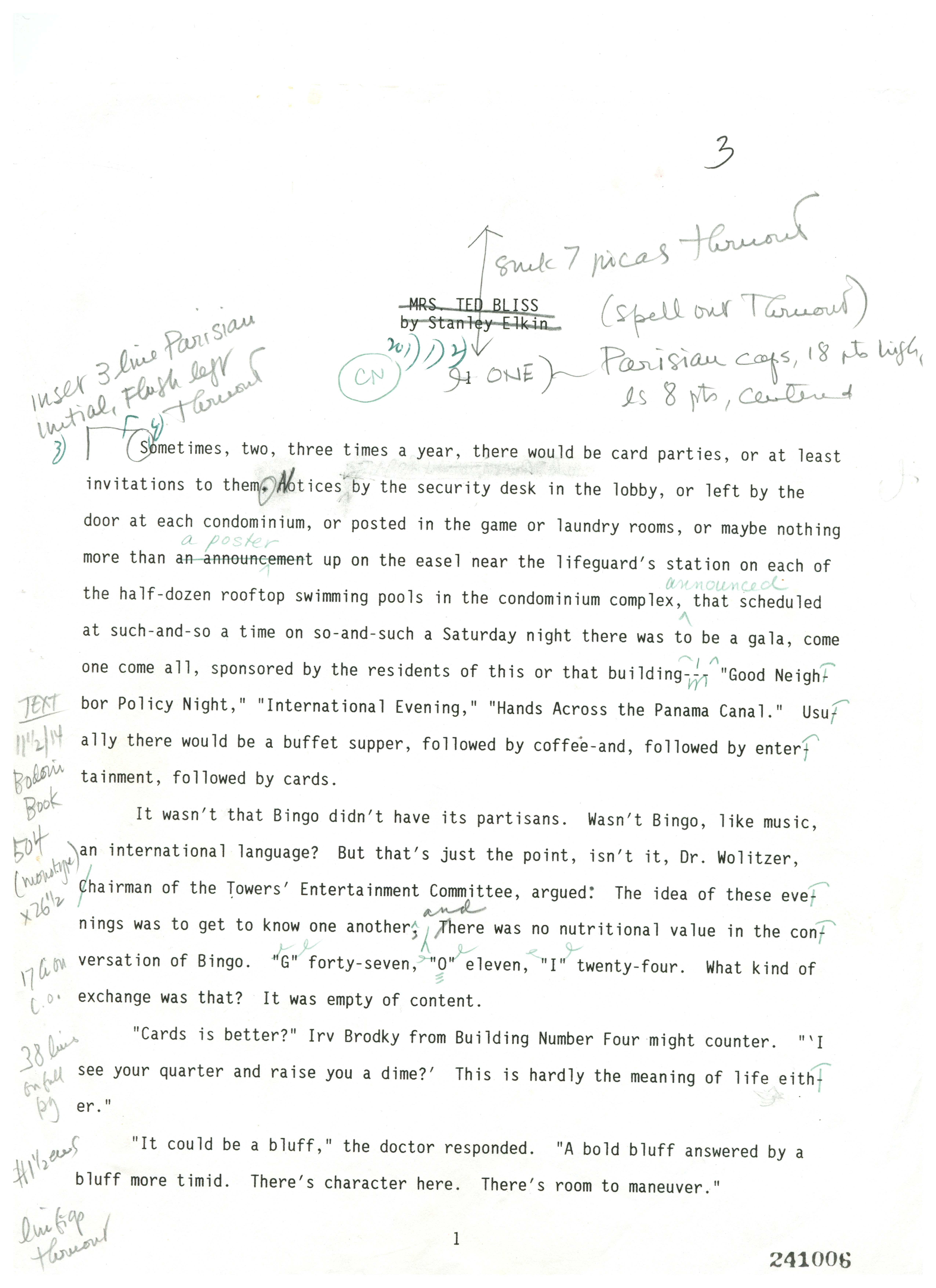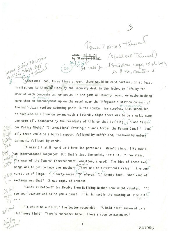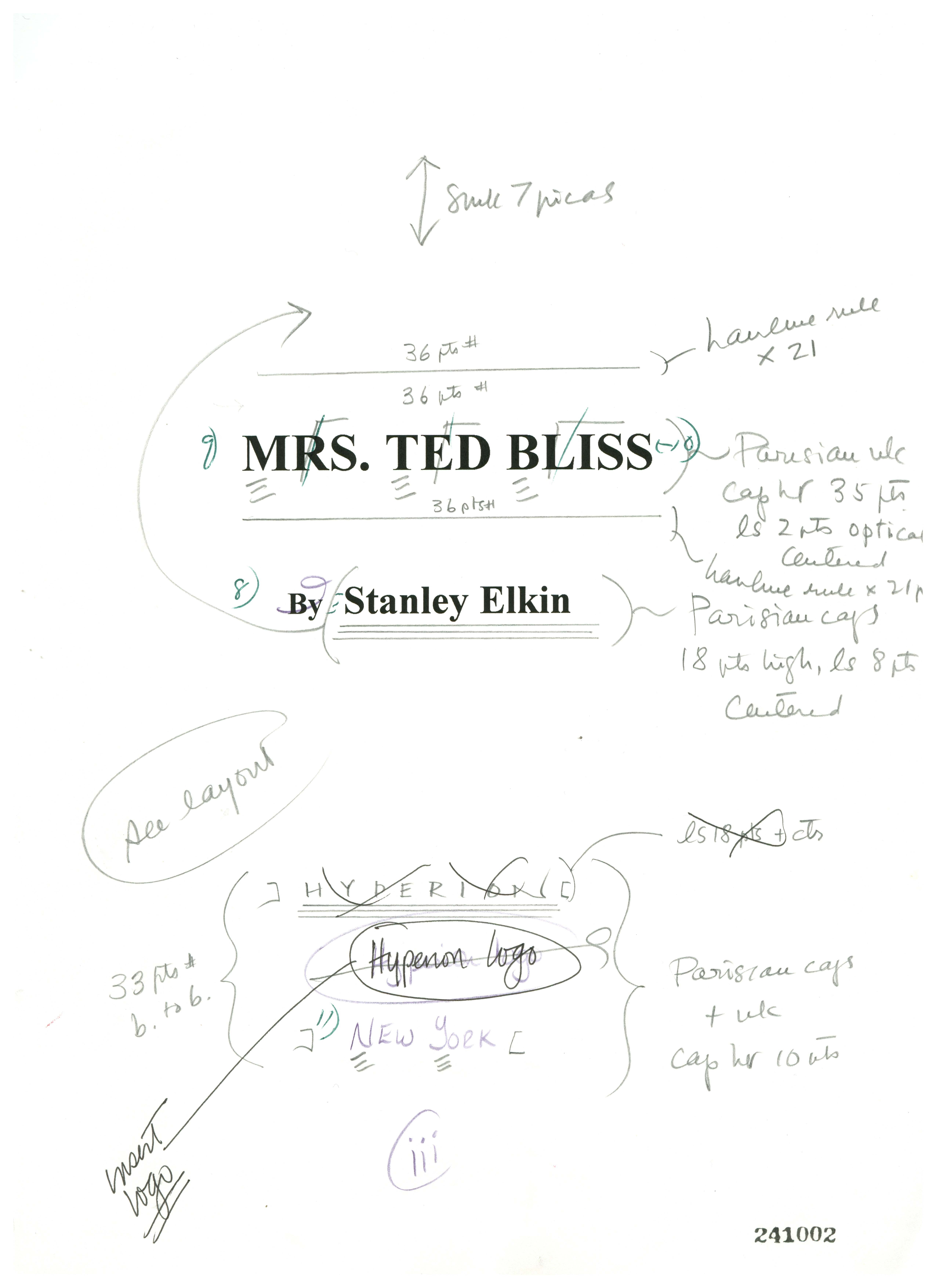 Elkin, Stanley, and Hyperion. Letter. 1995. “Copy-Edited Typescript of Mrs. Ted Bliss”. Series XIV.2.E Material Toward Mrs. Ted Bliss, 1995, Stanley and Joan Elkin’s Artistic Kingdom, accessed February 10, 2026, https://digitalexhibits.library.wustl.edu/s/elkin/item/30188