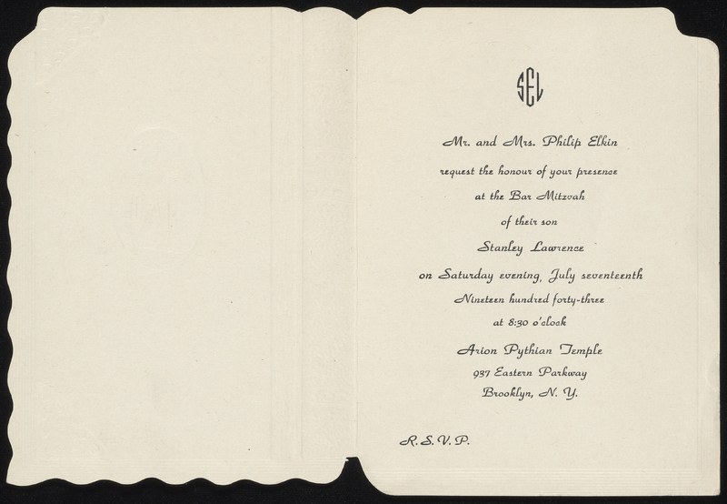 “Stanley’s Bar Mitzvah Invitation”. Letter. 1943, 1943, Stanley and Joan Elkin’s Artistic Kingdom, accessed February 12, 2026, https://digitalexhibits.library.wustl.edu/s/elkin/item/58119
