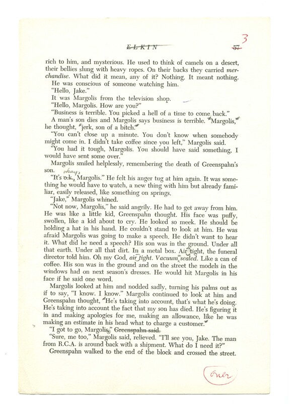 Elkin, Stanley. Letter. 1966. “Criers and Kibitzers, Kibitzers and Criers - Setting Copy”, 1966, Stanley and Joan Elkin’s Artistic Kingdom, accessed February 11, 2026, https://digitalexhibits.library.wustl.edu/s/elkin/item/58223