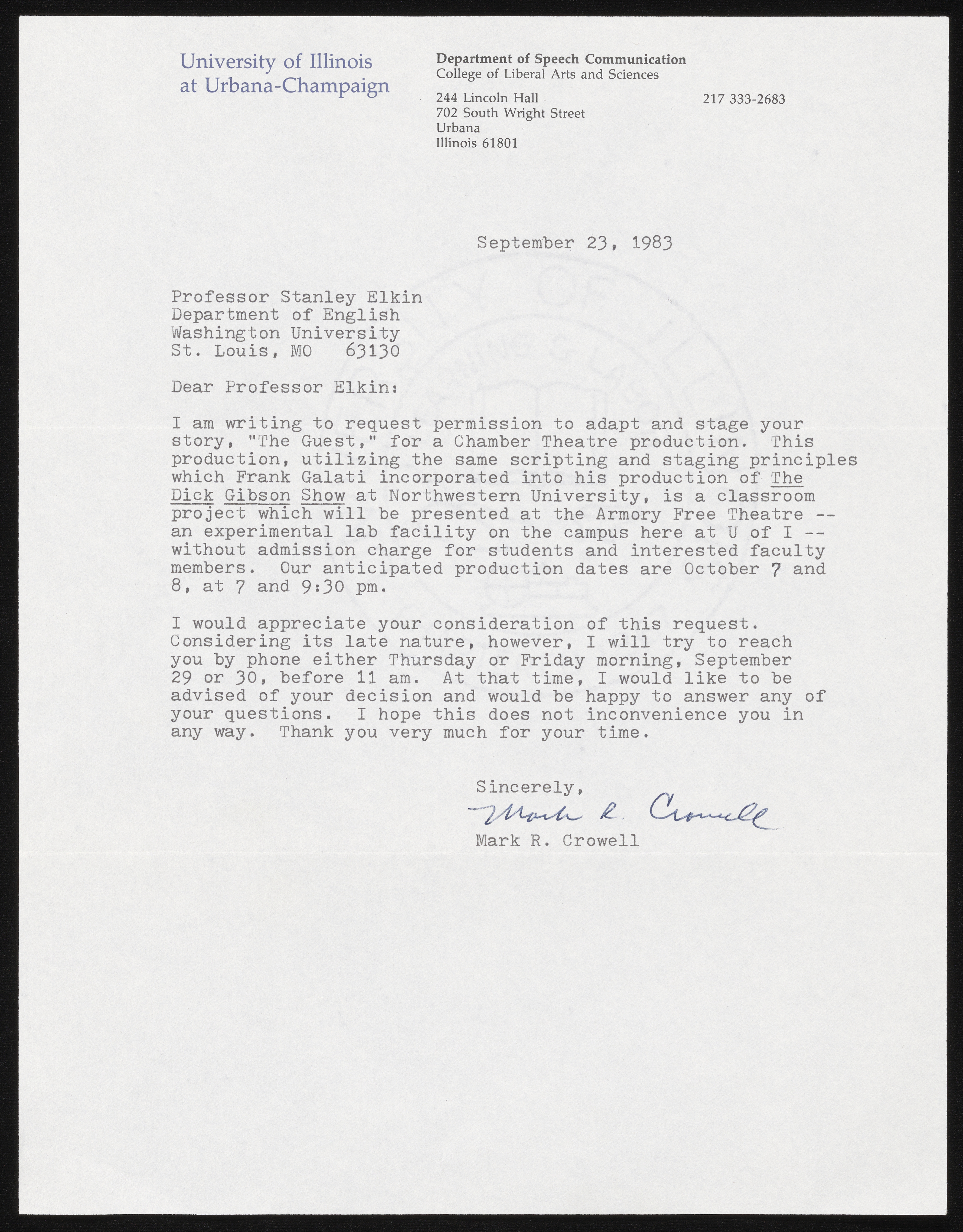 Crowell, Mark R. Letter. 1983. “Crowell to Elkin”, 1983, Stanley and Joan Elkin’s Artistic Kingdom, accessed February 10, 2026, https://digitalexhibits.library.wustl.edu/s/elkin/item/58330