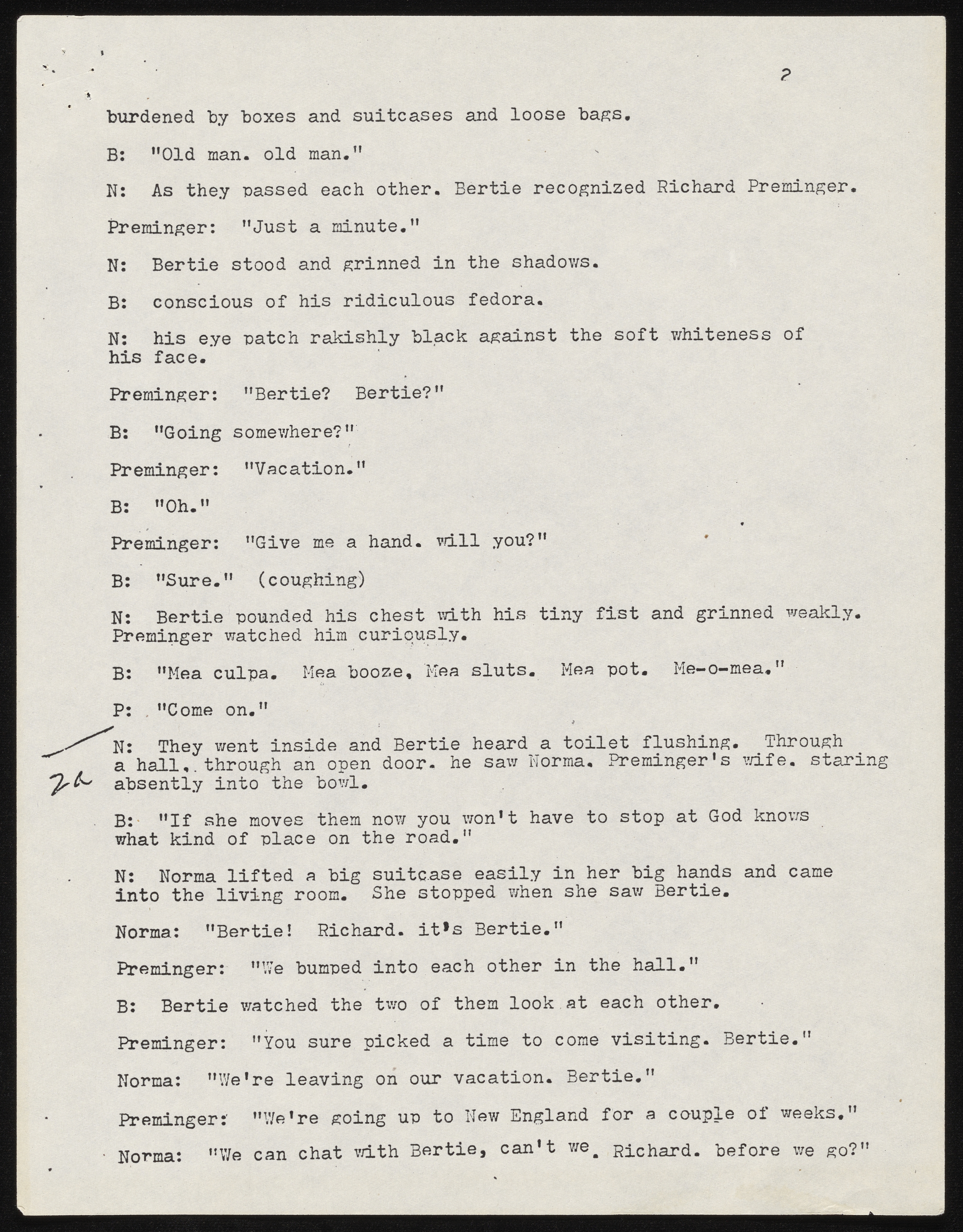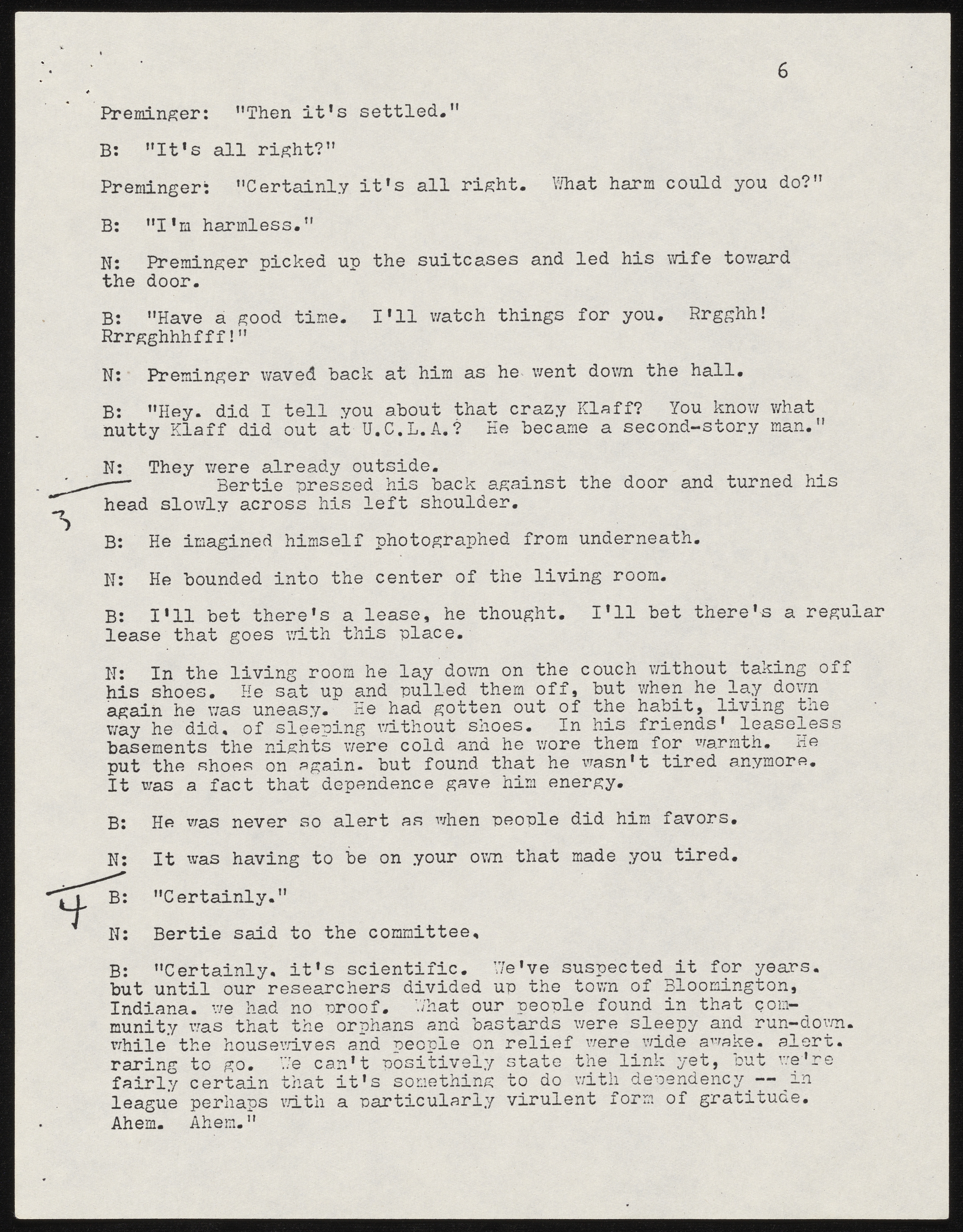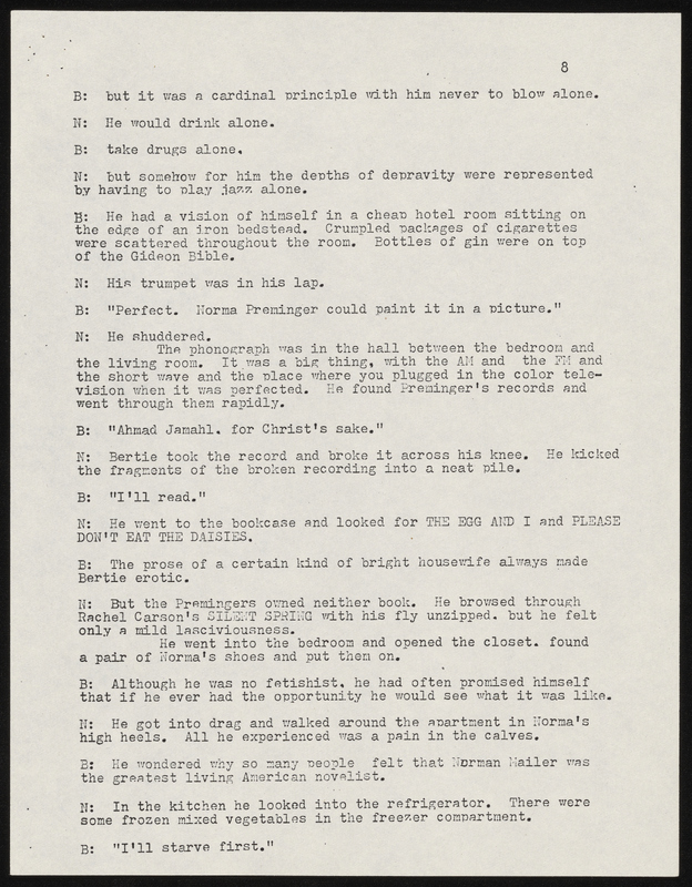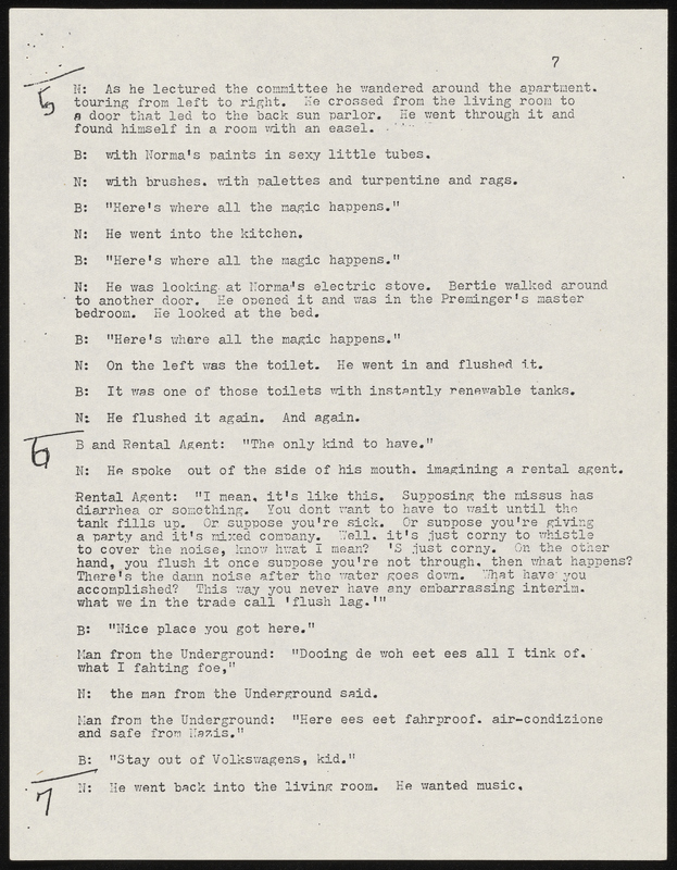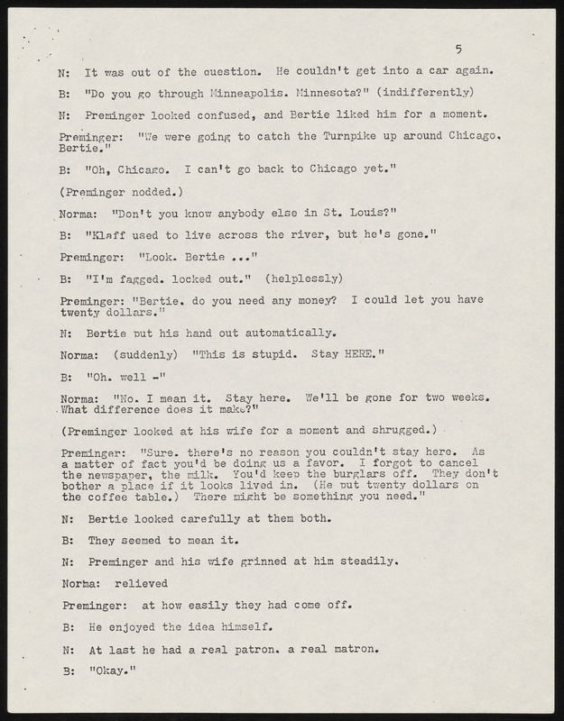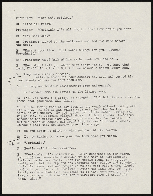 - Photocopy of typescript play adaptation of "The Guest" by Mark Crowell. It was adapted for the Chamber Theatre and the Armory Free Theatre and includes a program and flyer for Armory Free Theatre production.