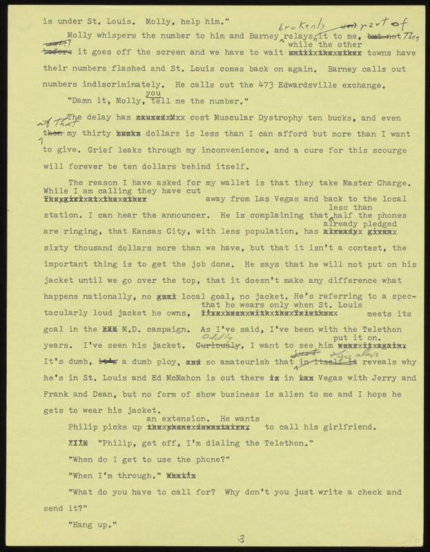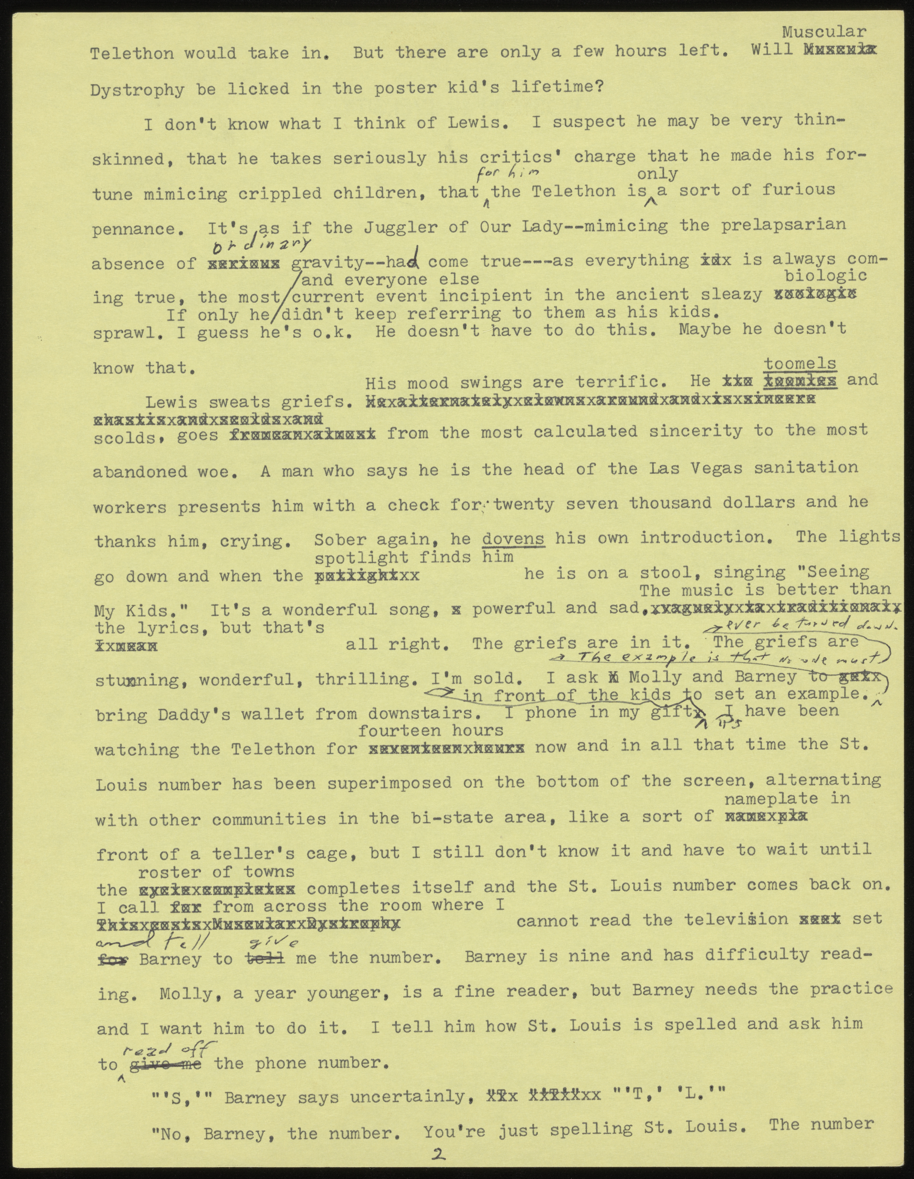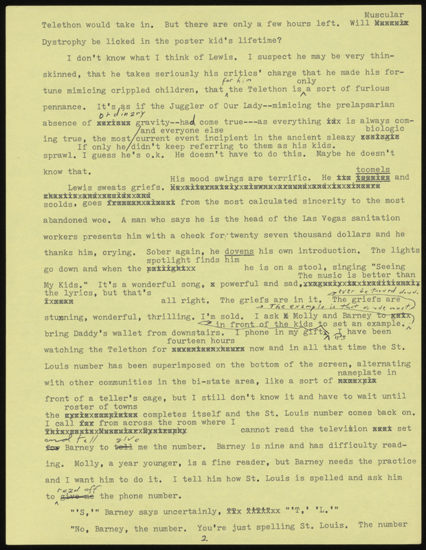 Elkin, Stanley. Letter. 1982. “George Mills - The Telethon Typescript”, 1982, Stanley and Joan Elkin’s Artistic Kingdom, accessed February 10, 2026, https://digitalexhibits.library.wustl.edu/s/elkin/item/58533