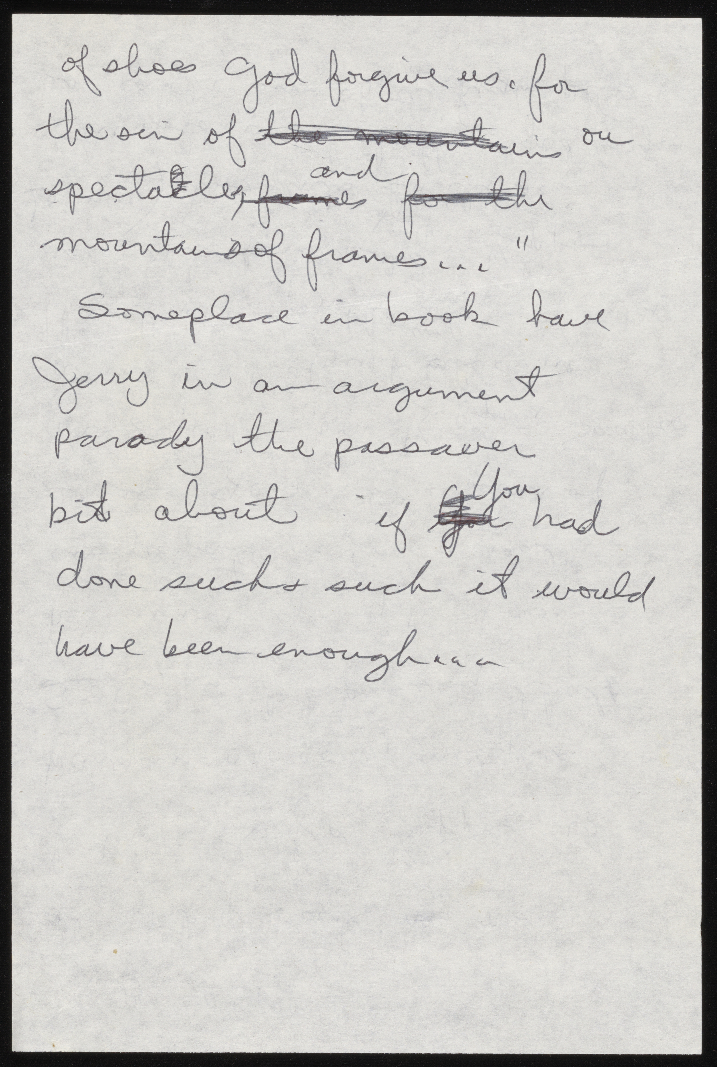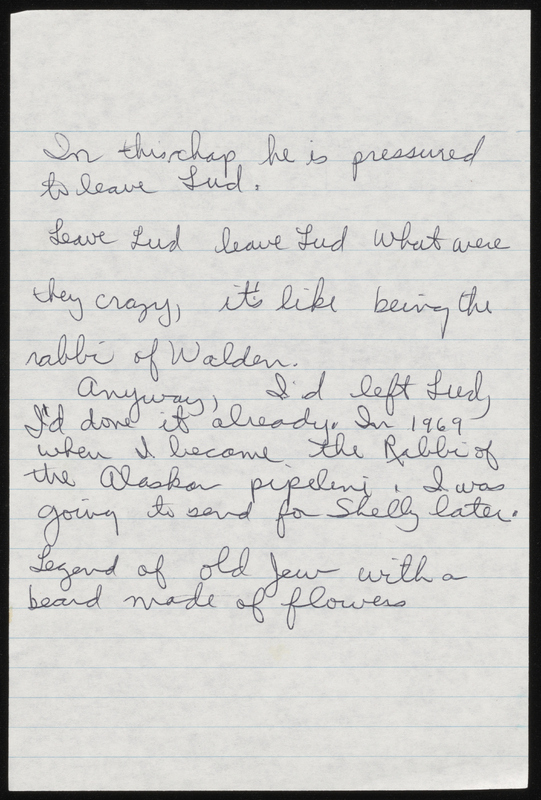 Elkin, Joan. Letter. n.d. “The Rabbi of Lud - Loose Notes.”, Stanley and Joan Elkin’s Artistic Kingdom, accessed February 11, 2026, https://digitalexhibits.library.wustl.edu/s/elkin/item/58633