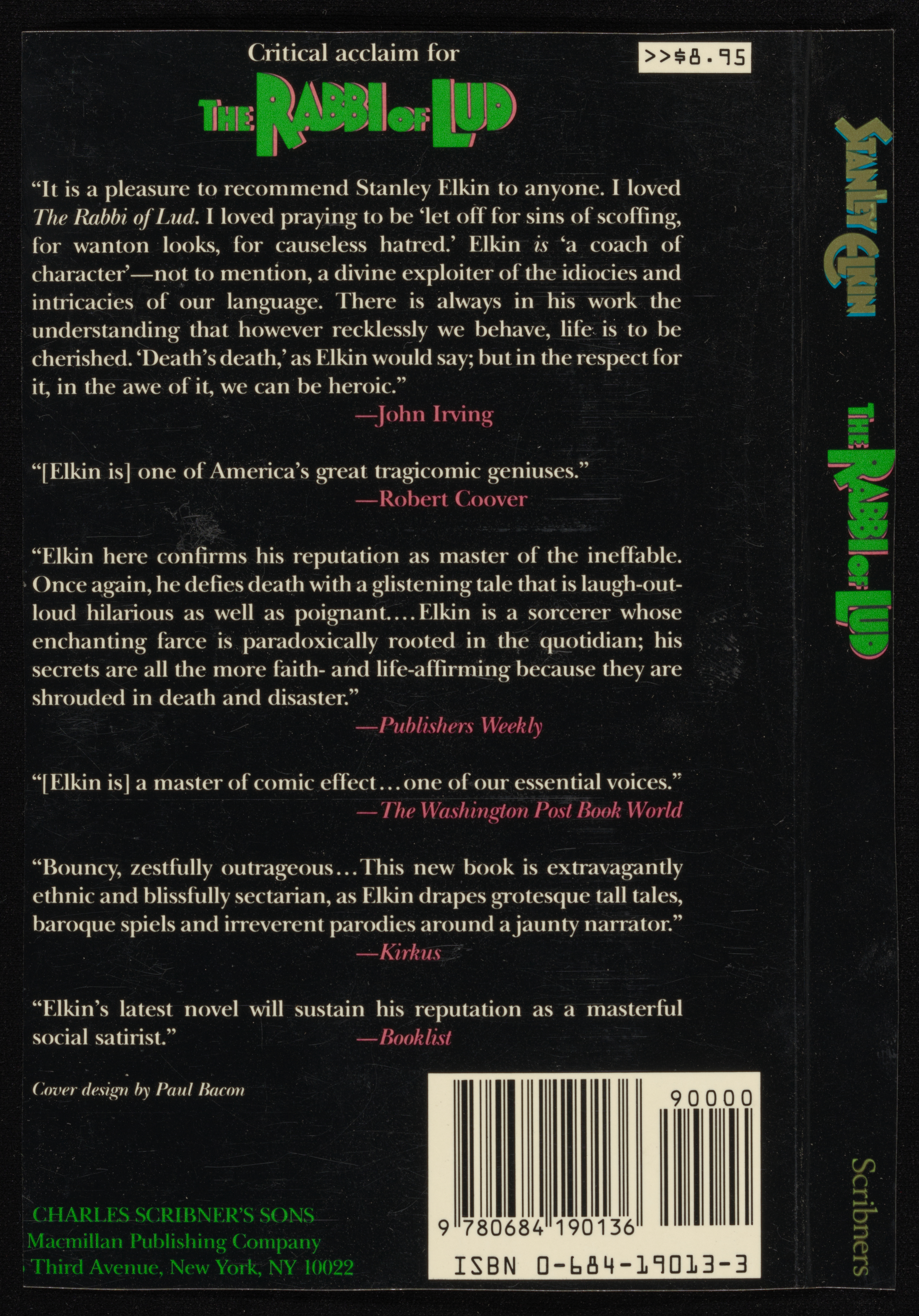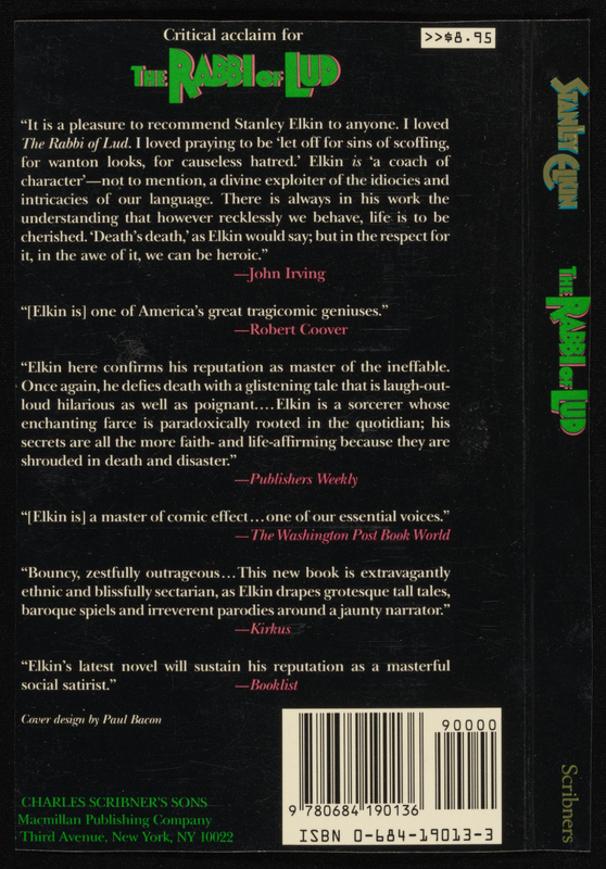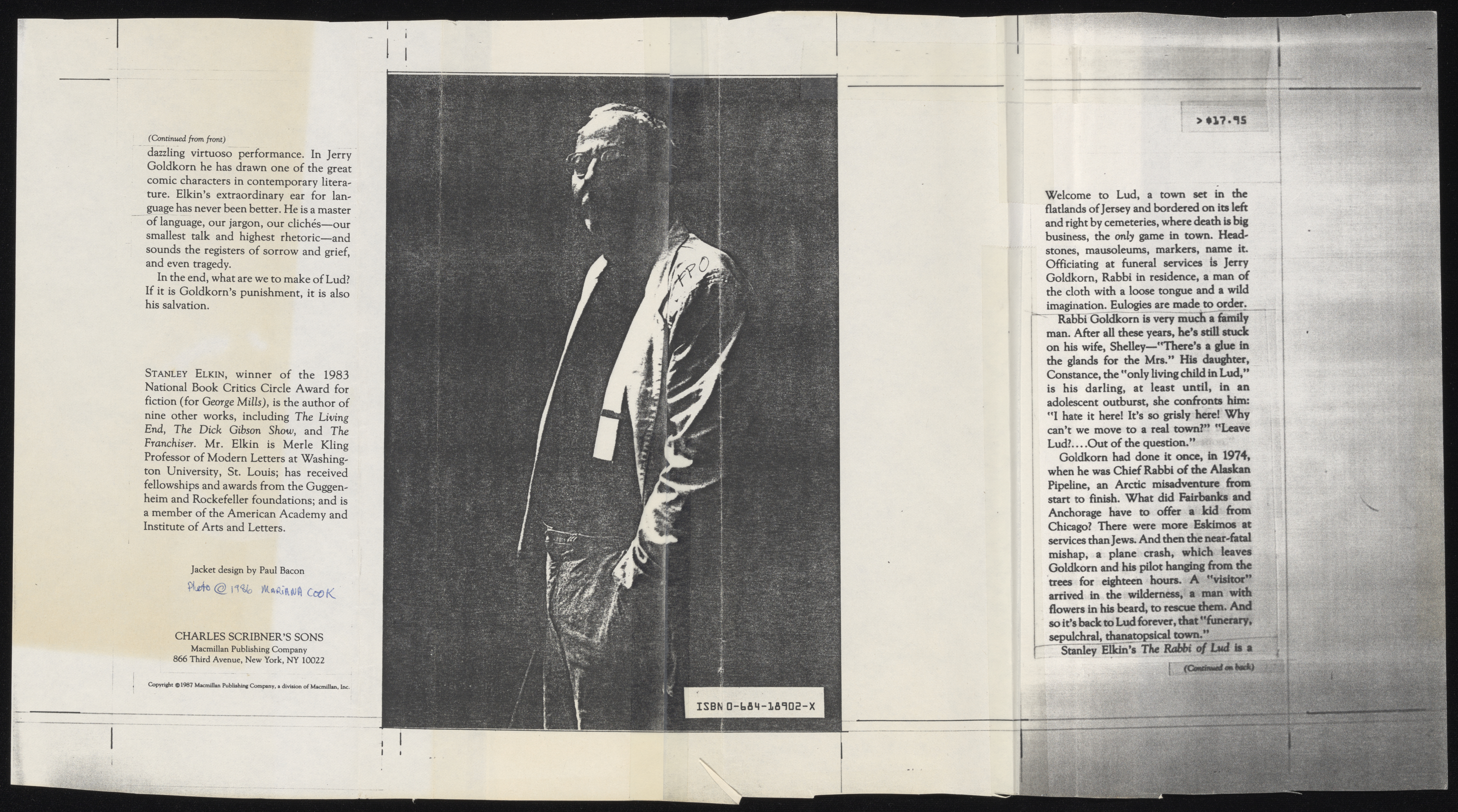 “Rabbi of Lud - Dust Jacket”. n.d, Stanley and Joan Elkin’s Artistic Kingdom, accessed February 11, 2026, https://digitalexhibits.library.wustl.edu/s/elkin/item/58649