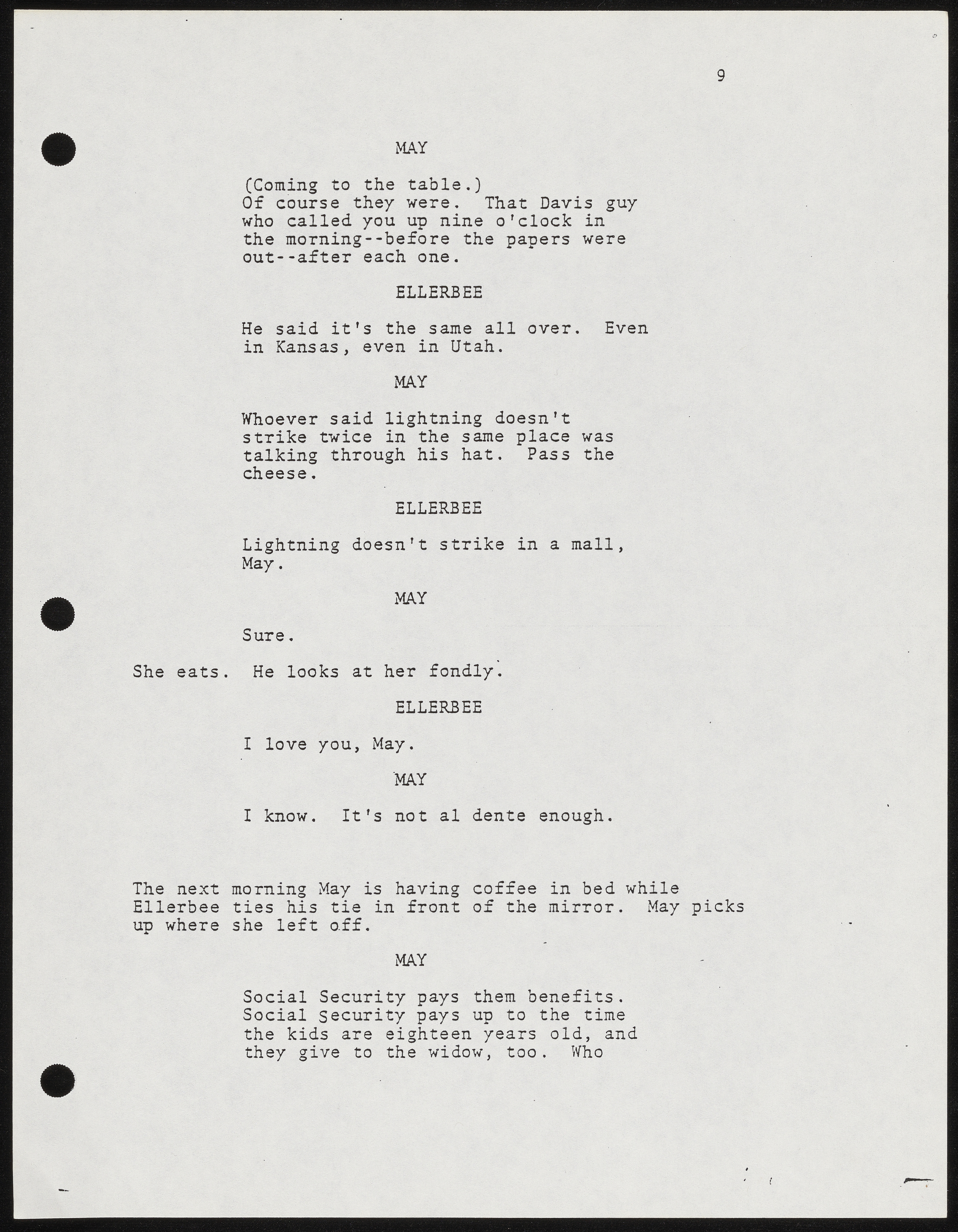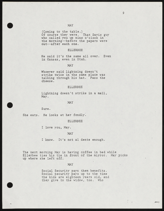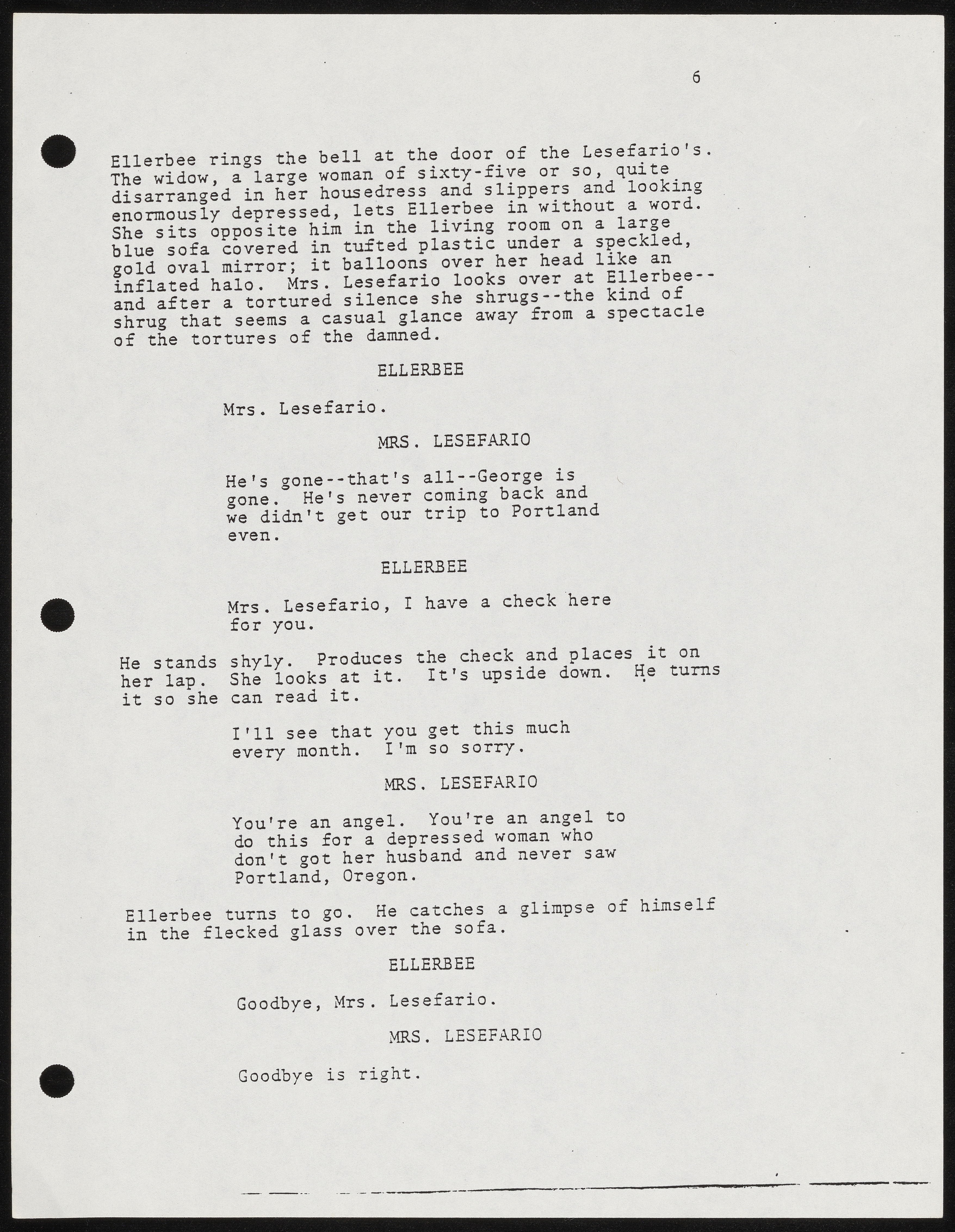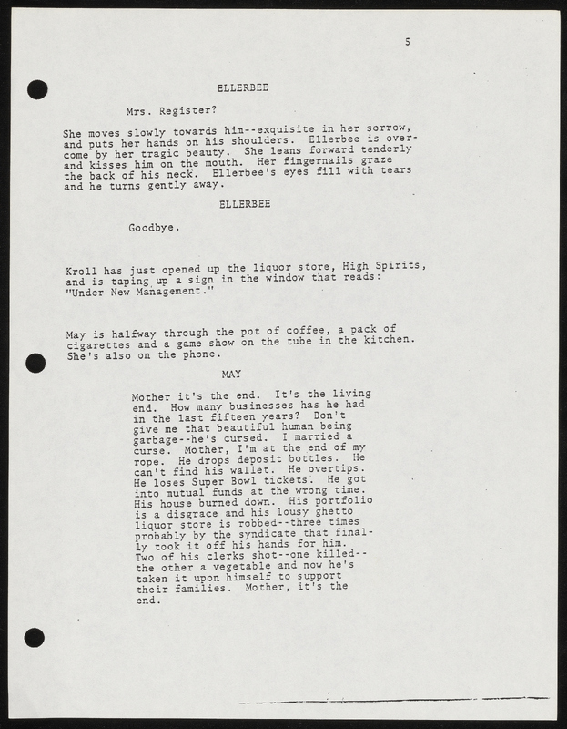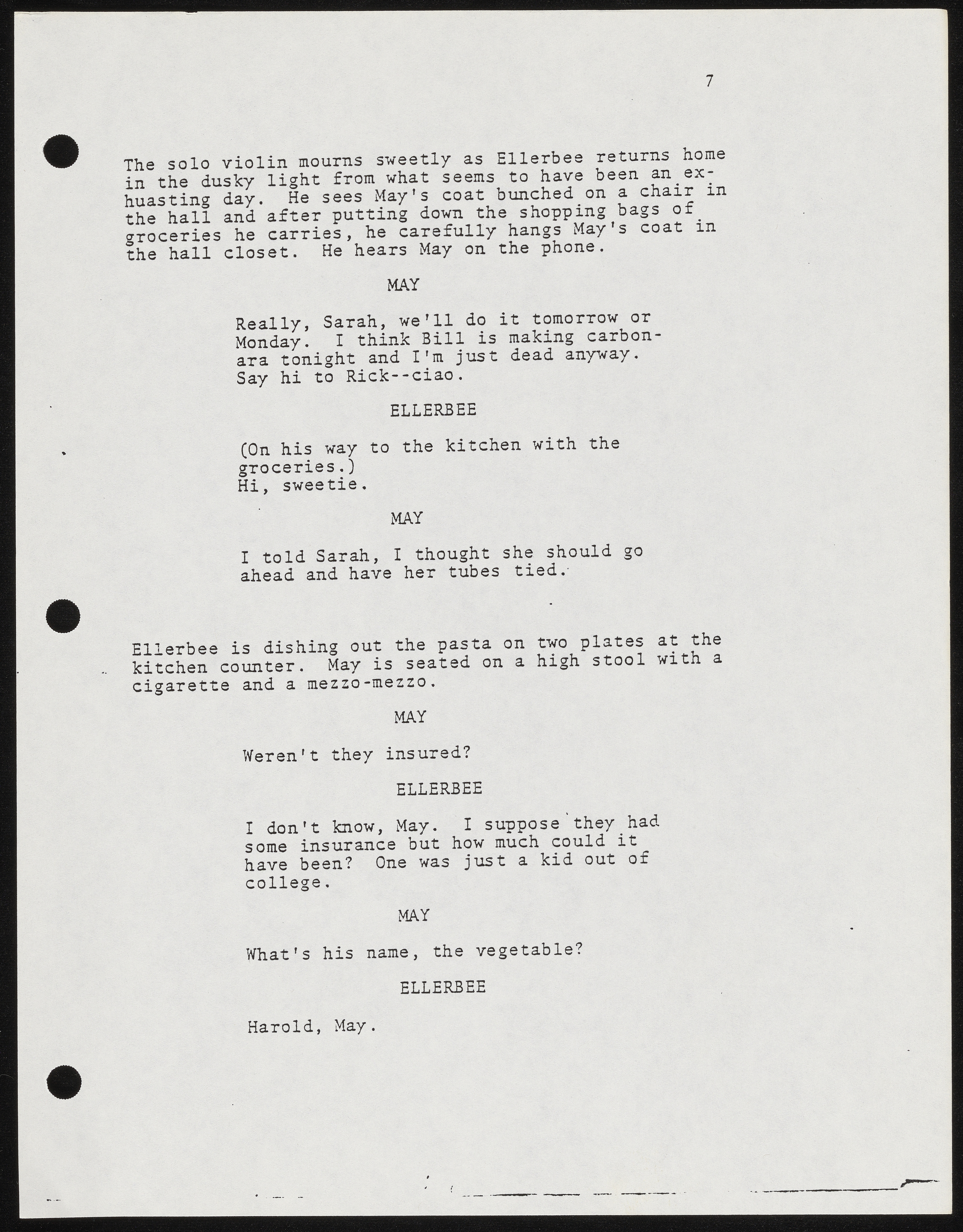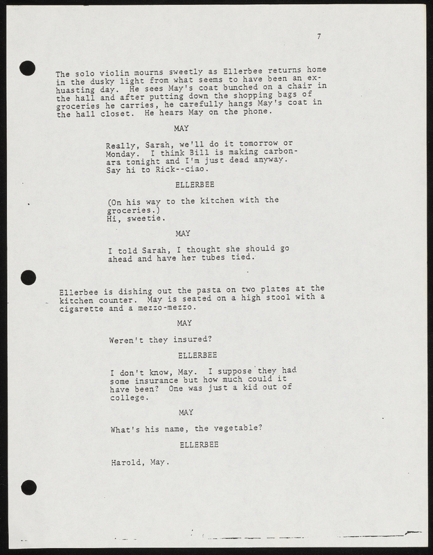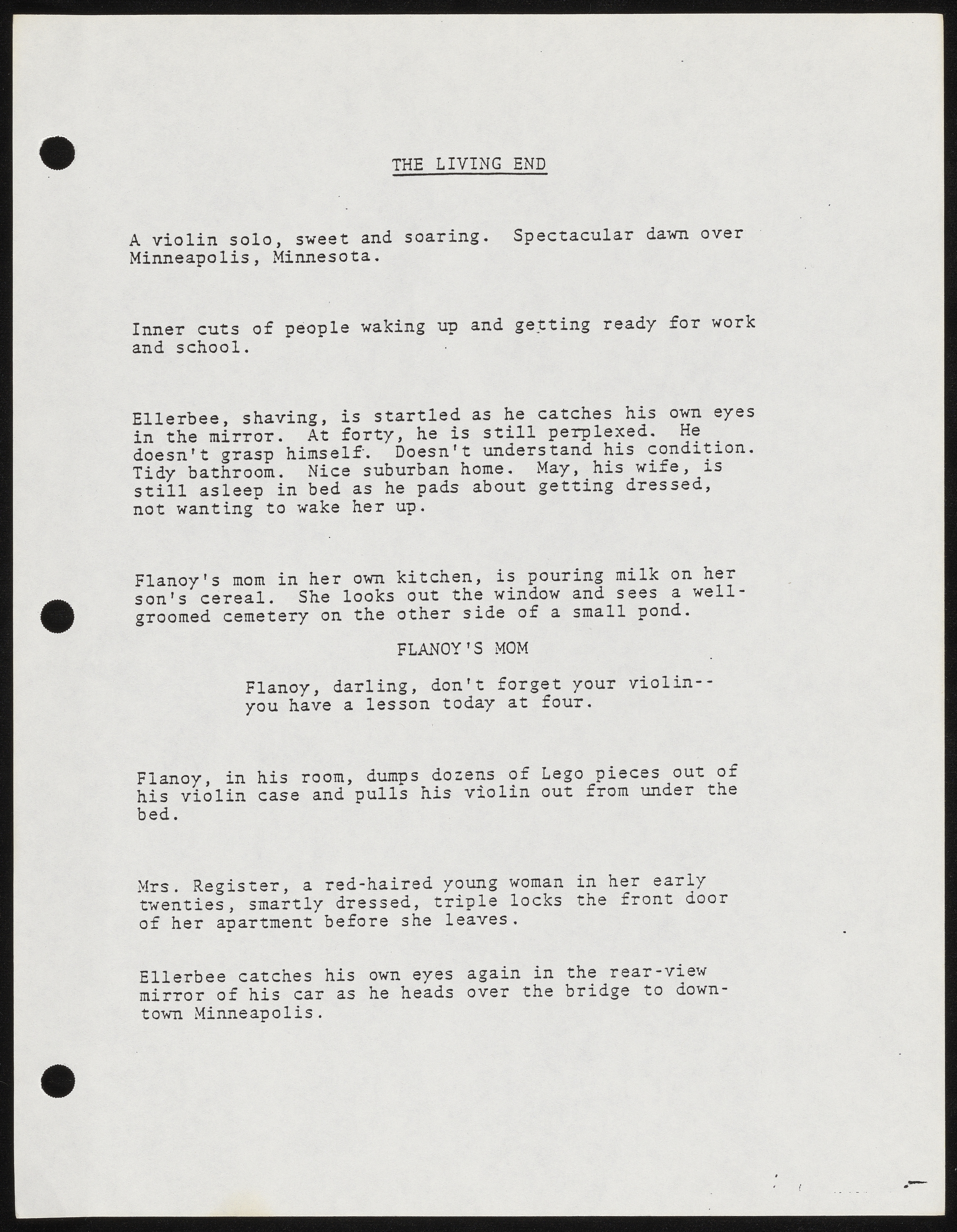 - Typescript photocopy of an adaptation for the screen of Stanley Elkin's "The Living End" by Frank Galati.