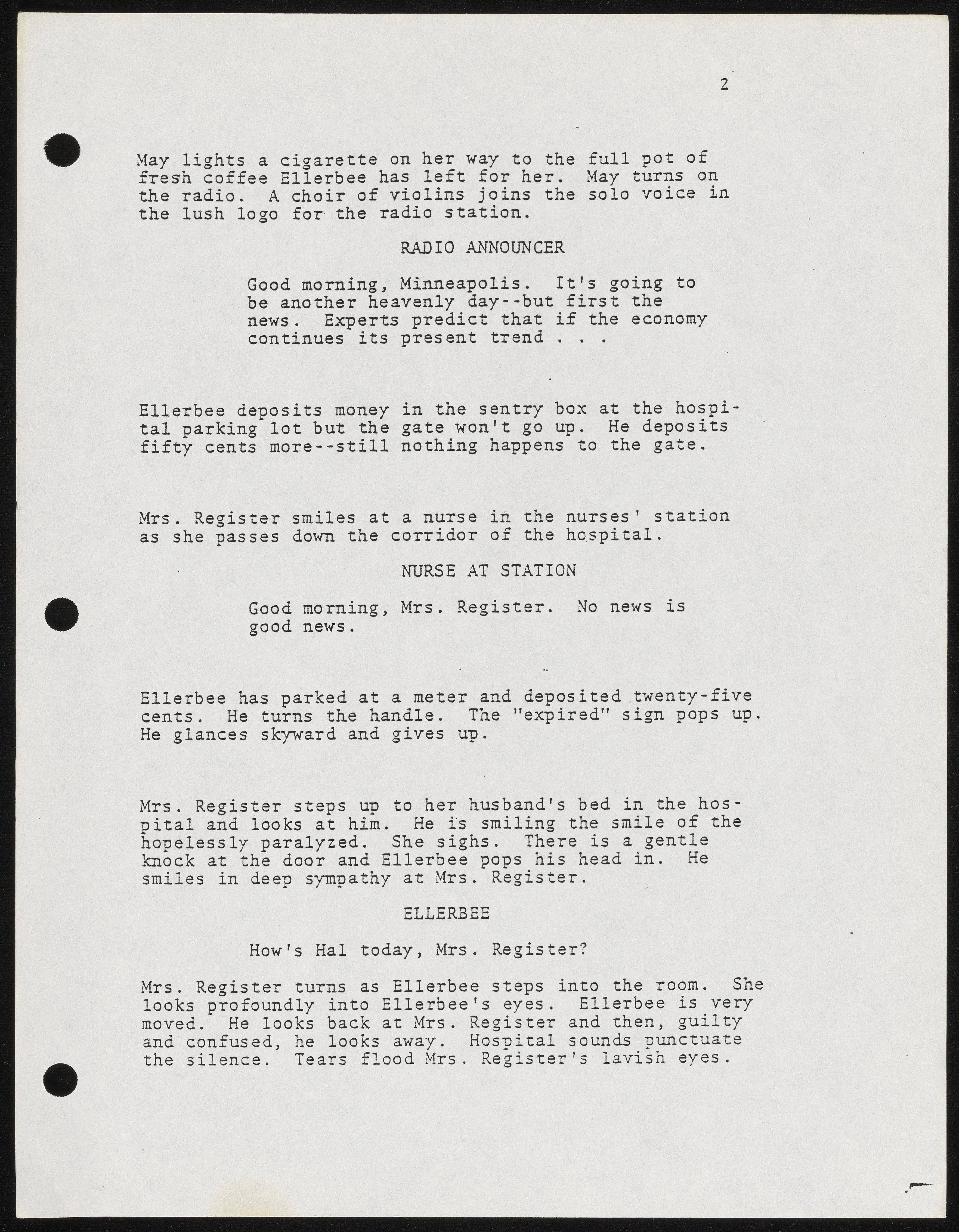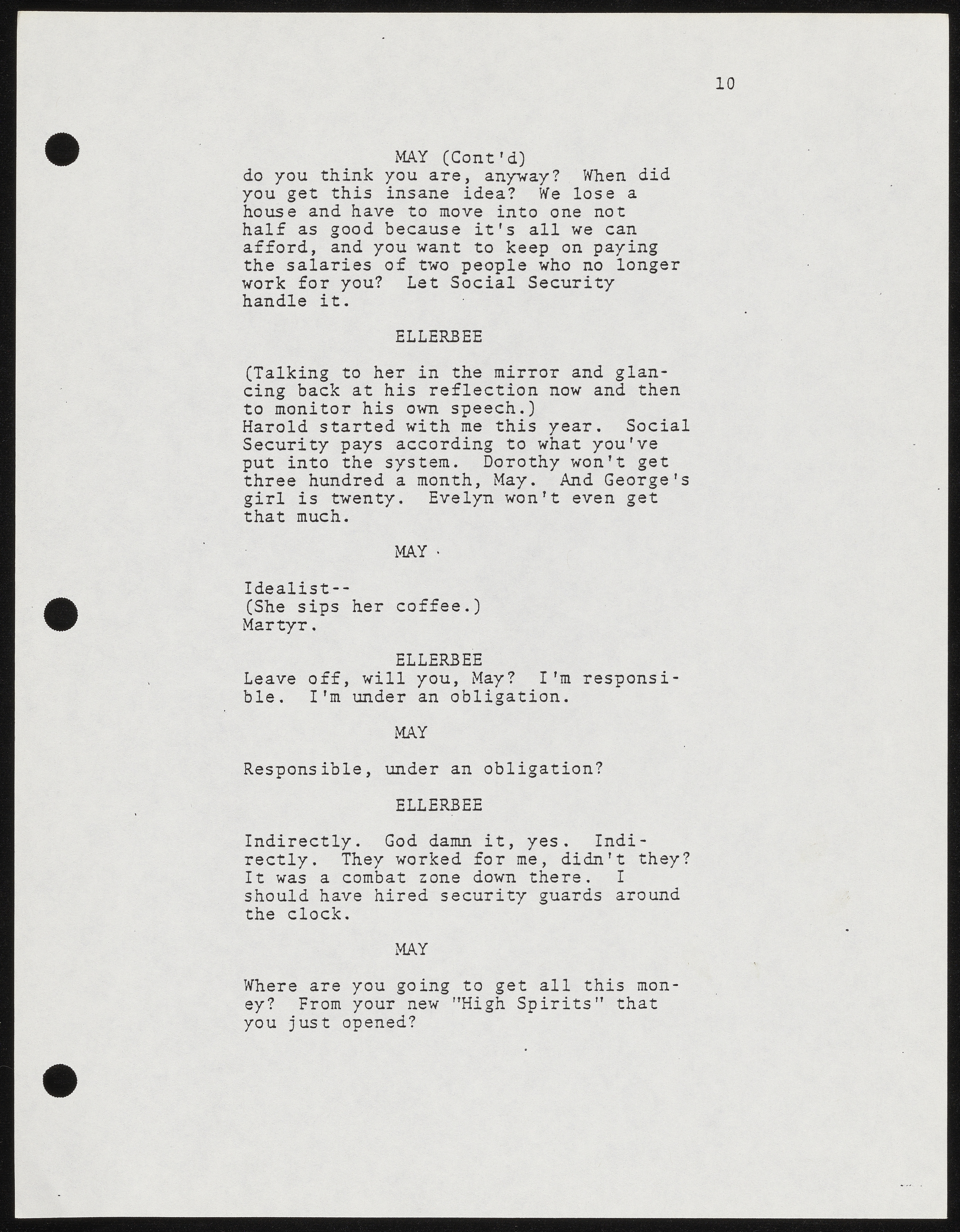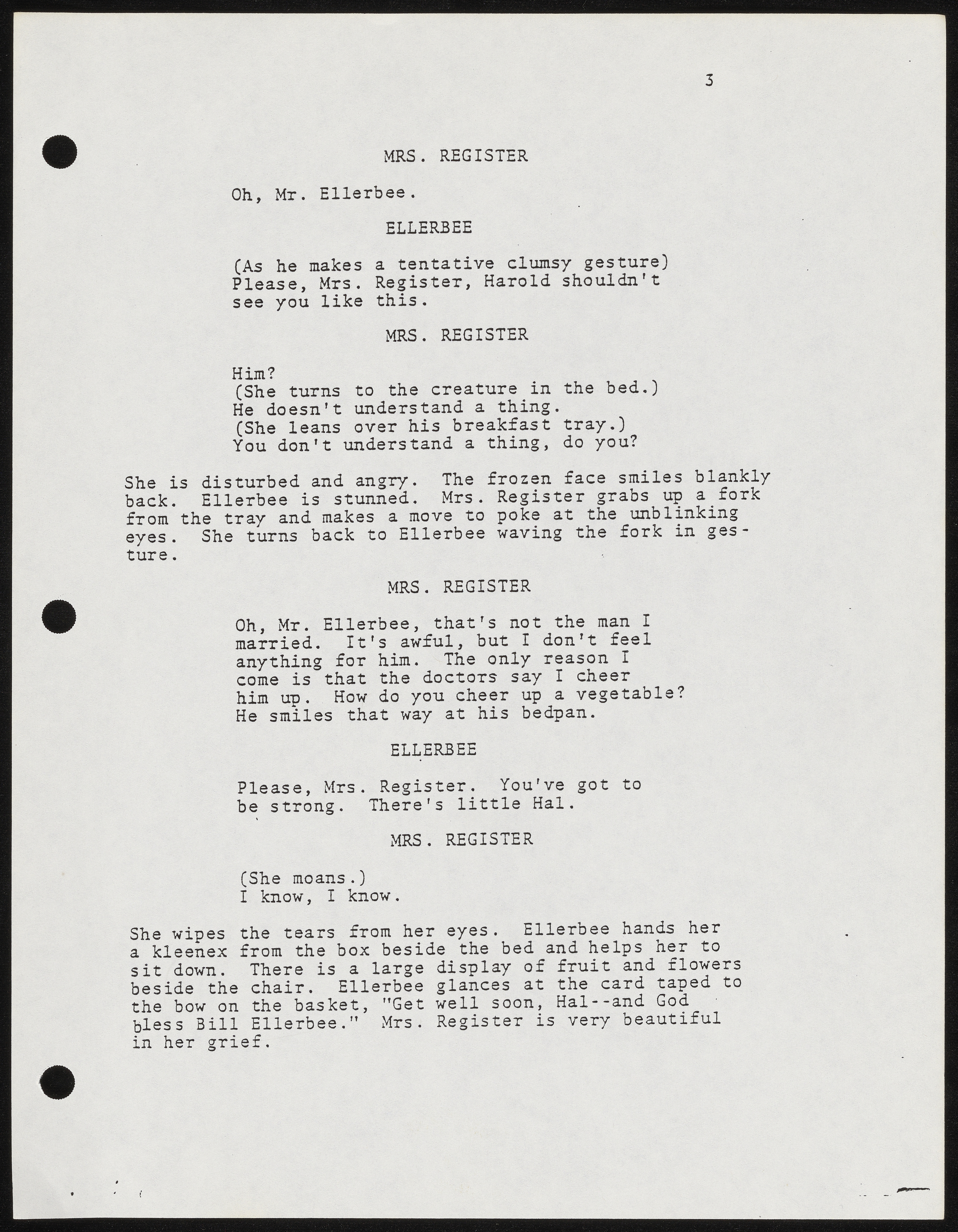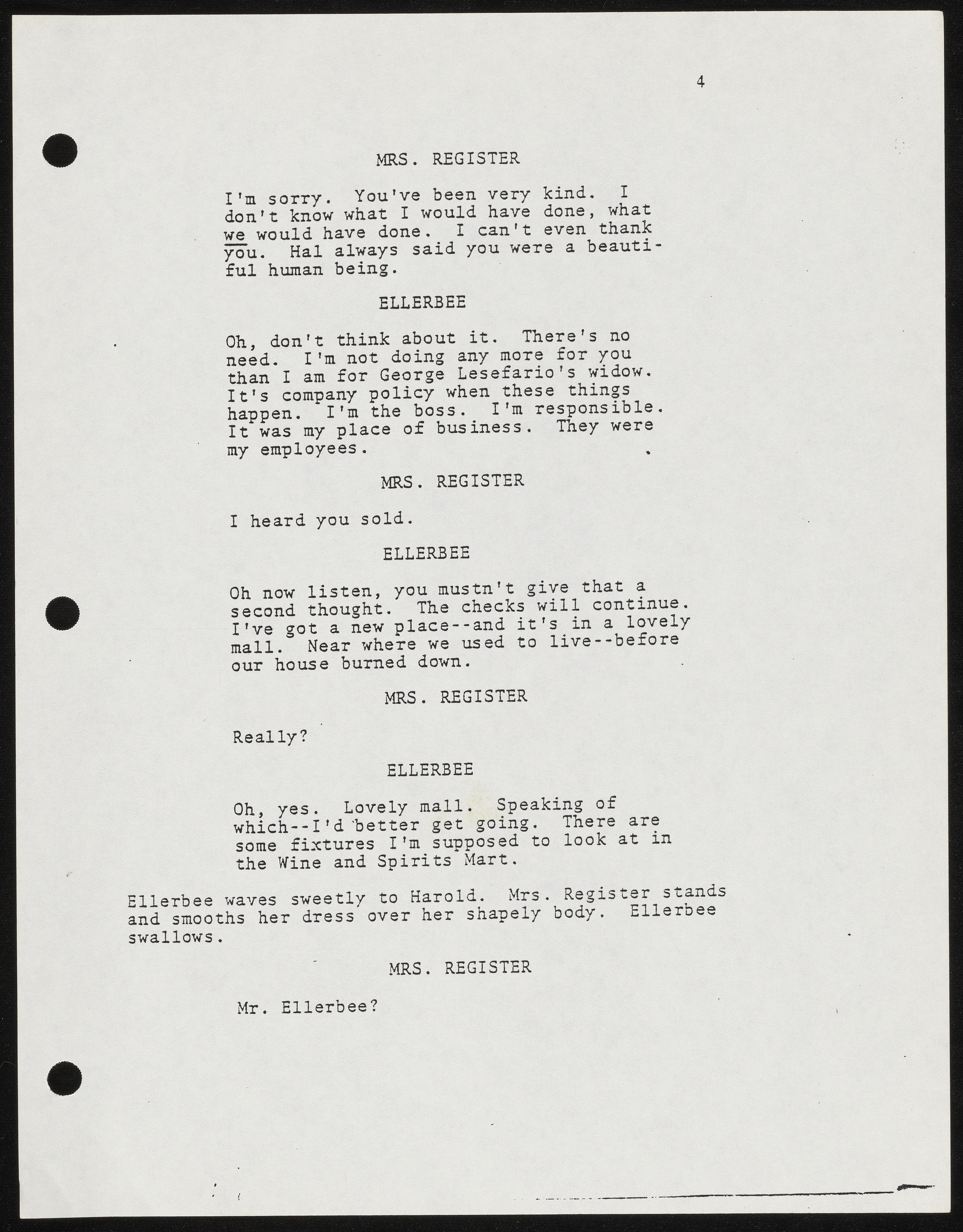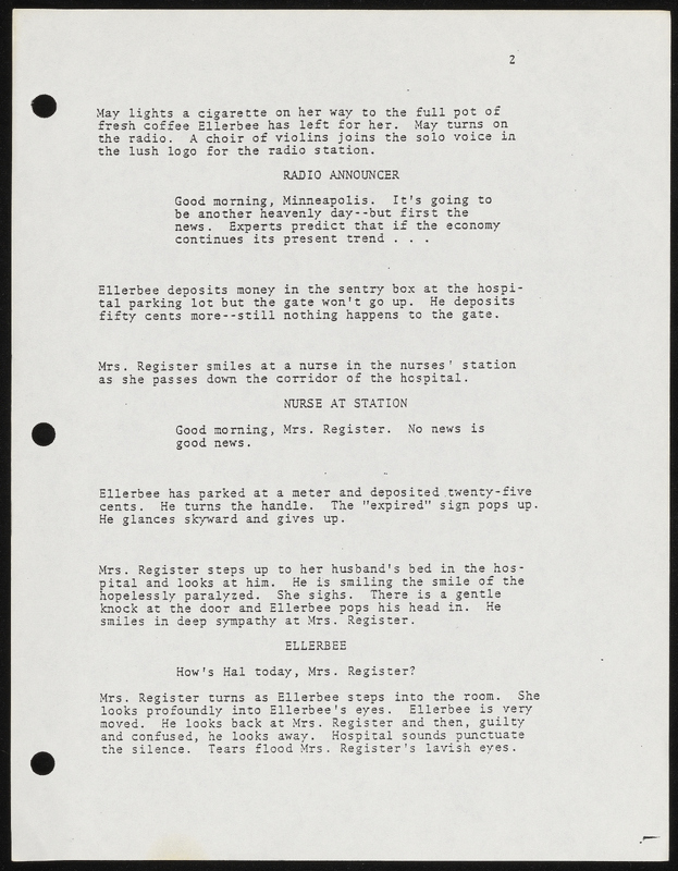 - Typescript photocopy of an adaptation for the screen of Stanley Elkin's "The Living End" by Frank Galati.