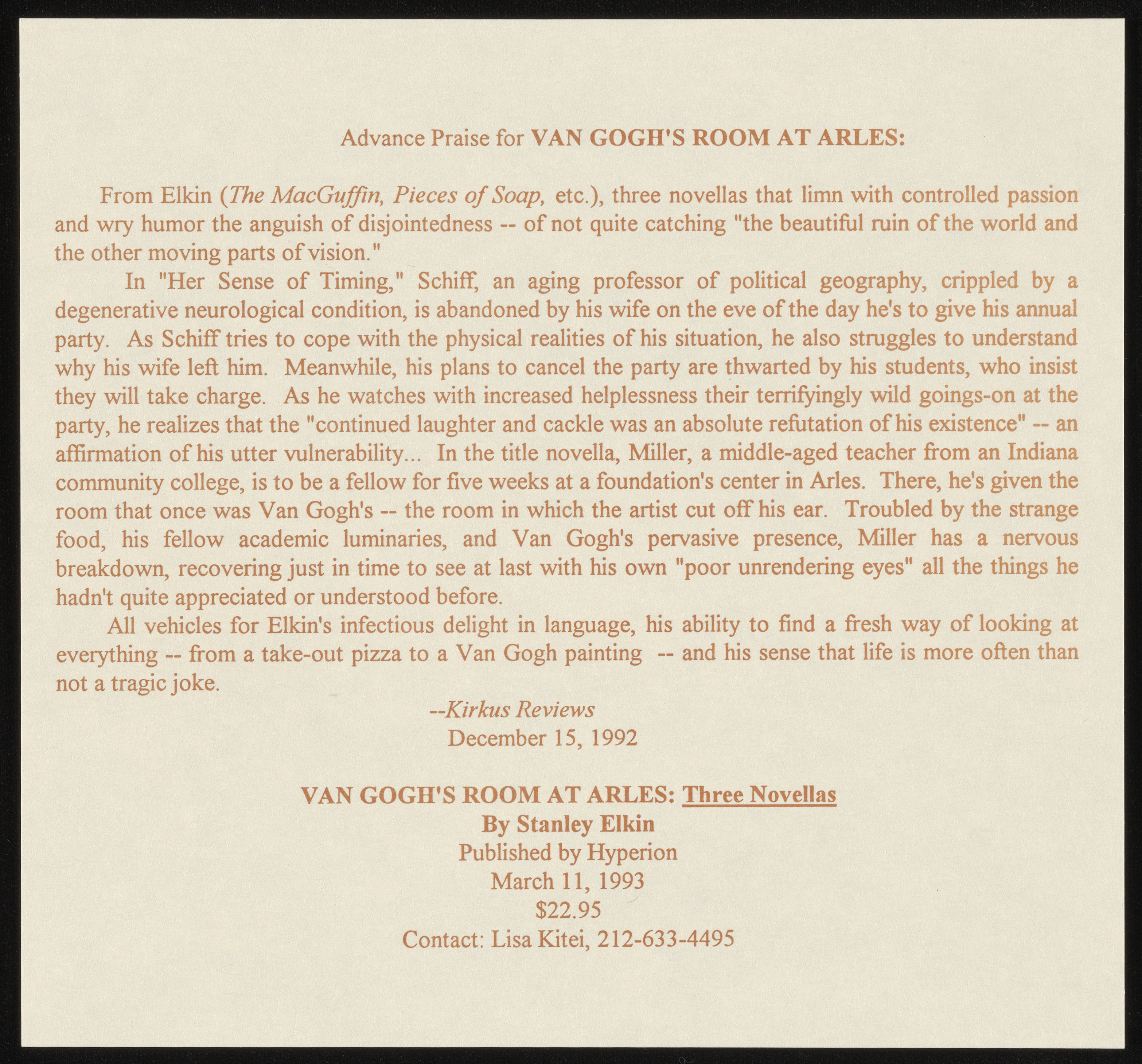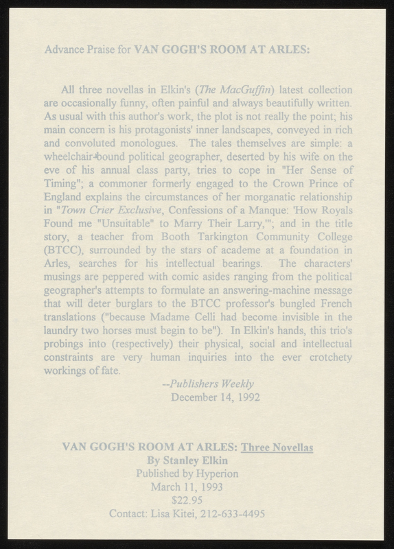 “Van Gogh’s Room at Arles - Press Kit”. Letter. 1992, 1992, Stanley and Joan Elkin’s Artistic Kingdom, accessed February 11, 2026, https://digitalexhibits.library.wustl.edu/s/elkin/item/58912