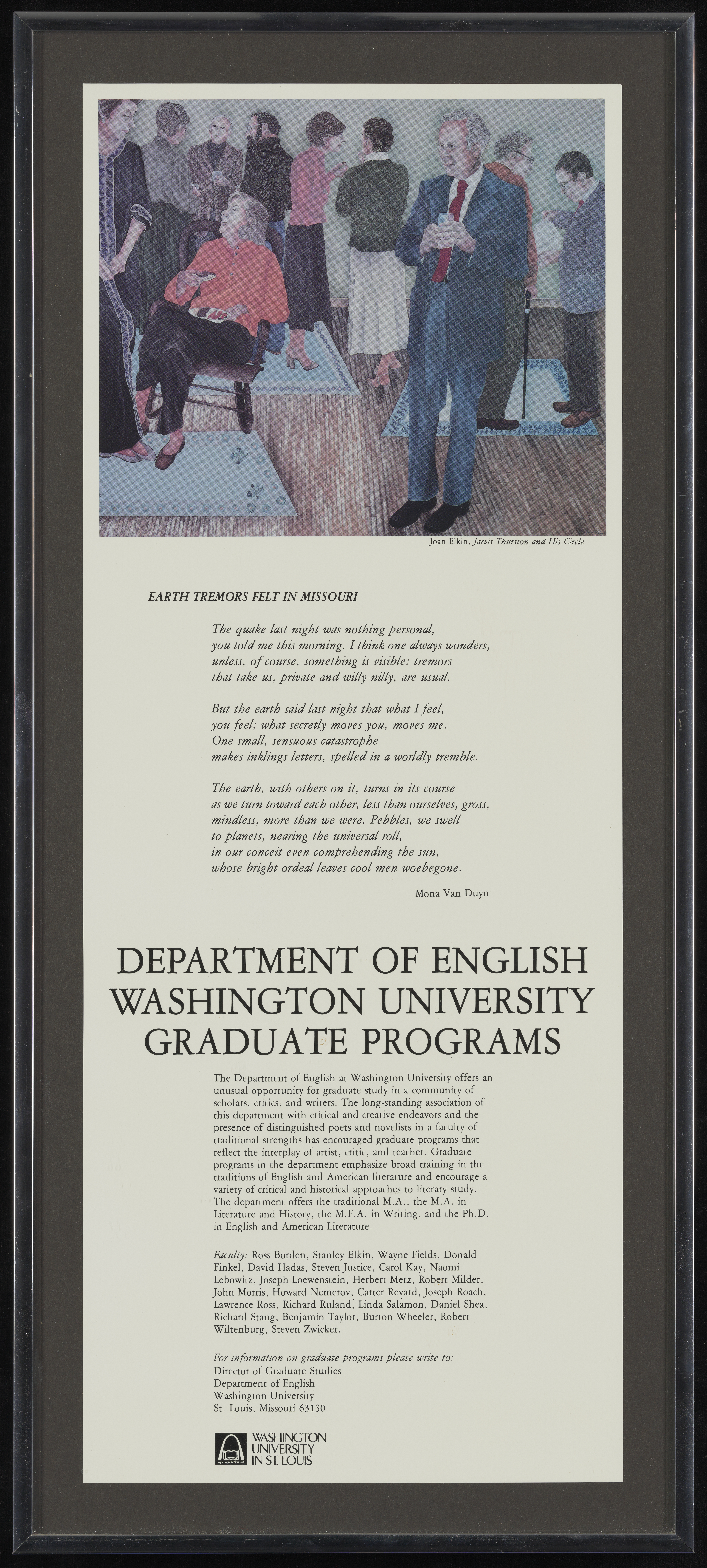 Washington University Department of English. n.d. WashU Department of English Poster - Earth Tremors, Stanley and Joan Elkin’s Artistic Kingdom, accessed February 11, 2026, https://digitalexhibits.library.wustl.edu/s/elkin/item/58971