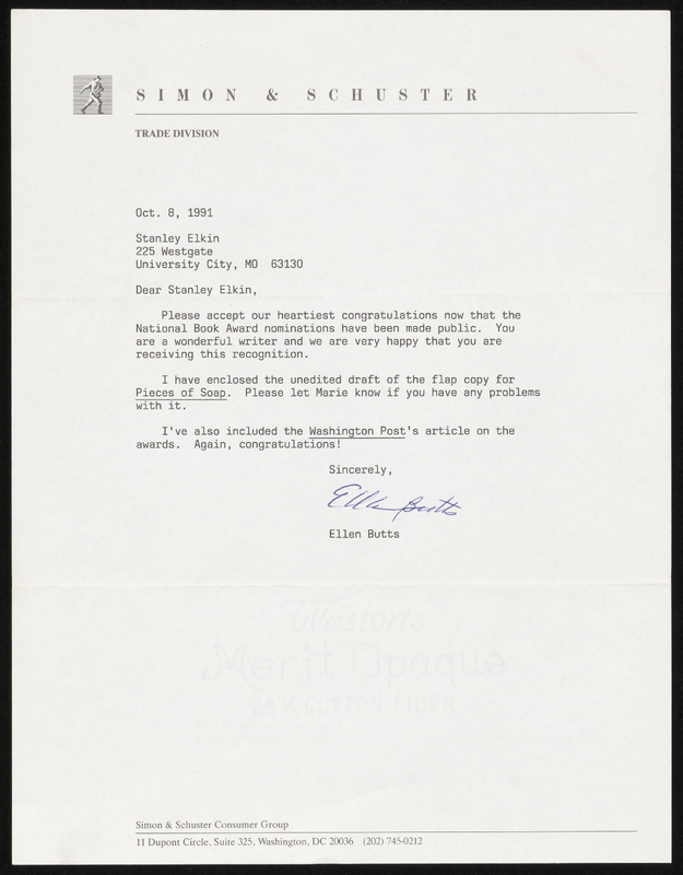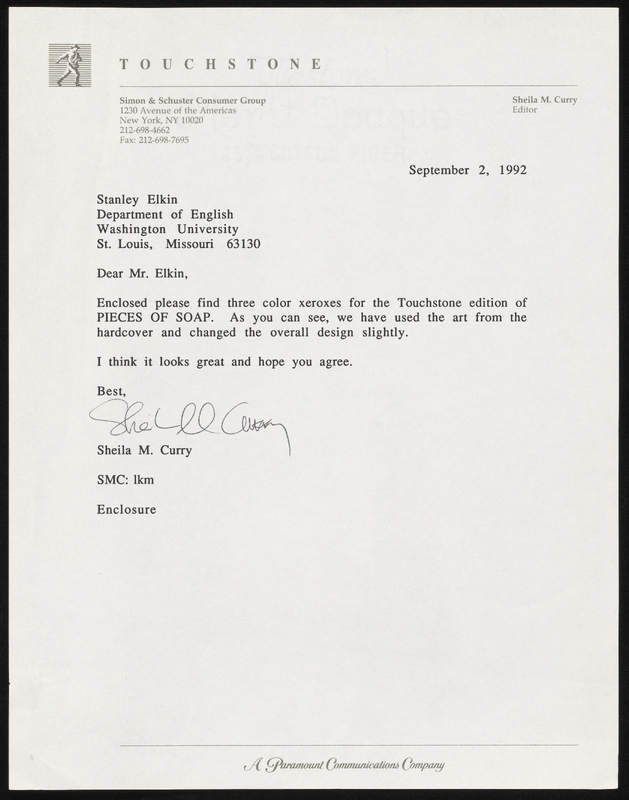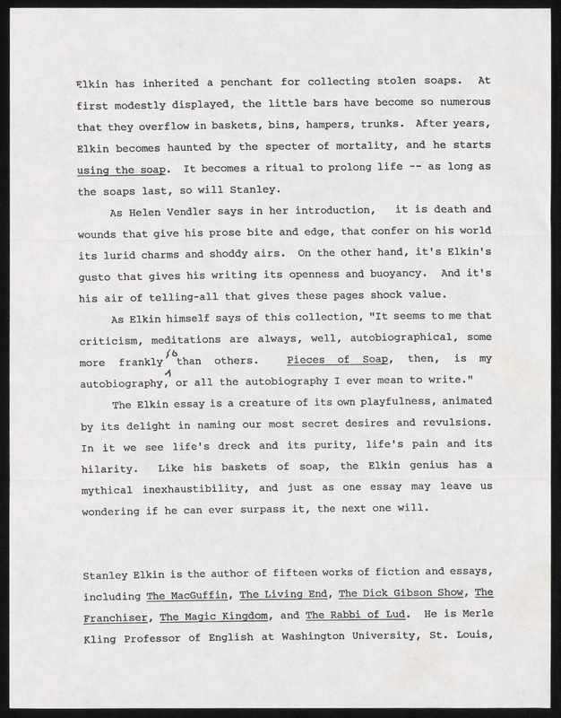 “Pieces of Soap - Dust Jackets”. 1992, Stanley and Joan Elkin’s Artistic Kingdom, accessed February 11, 2026, https://digitalexhibits.library.wustl.edu/s/elkin/item/59009
