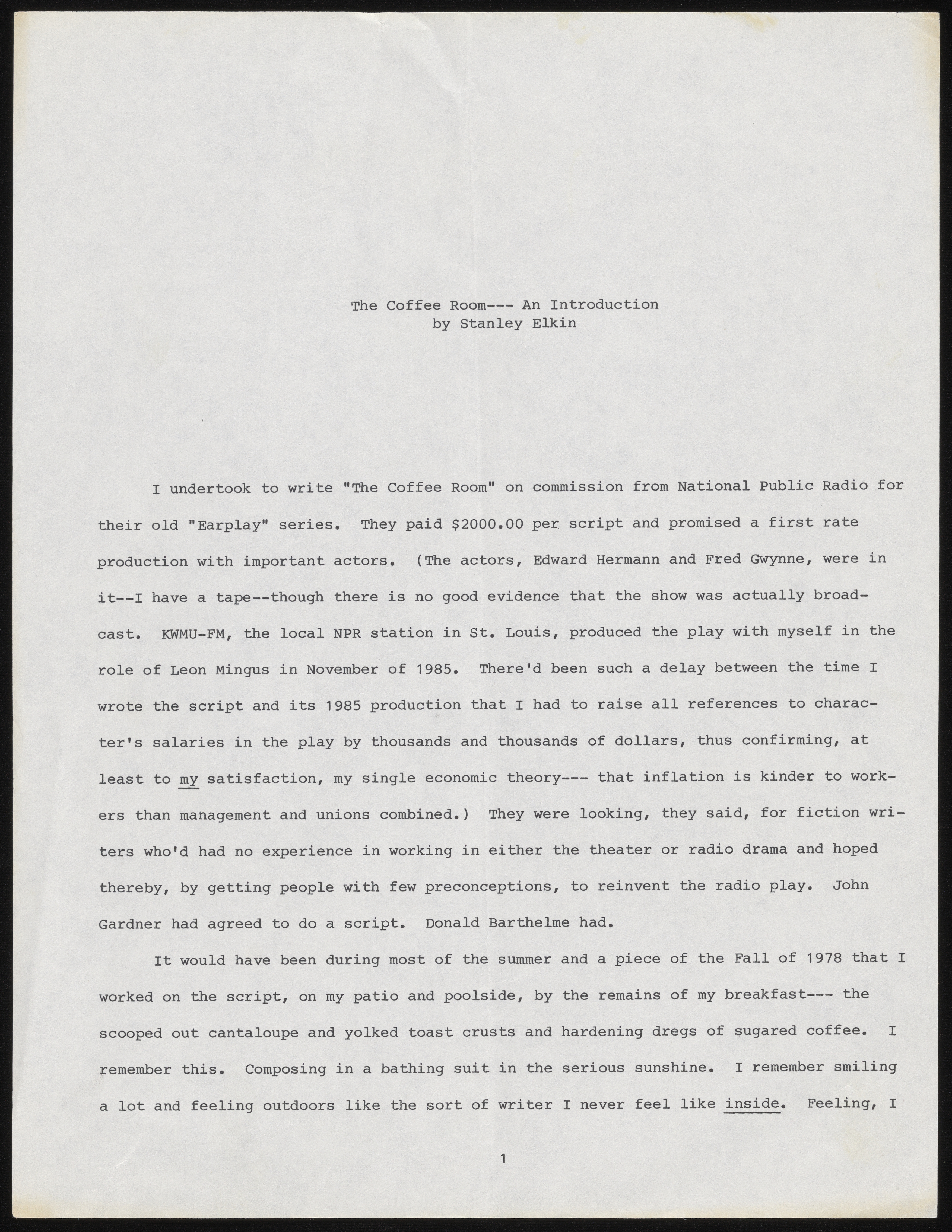 Elkin, Stanley. Letter. 1986. “The Coffee Room - Introduction”, 1986, Stanley and Joan Elkin’s Artistic Kingdom, accessed February 11, 2026, https://digitalexhibits.library.wustl.edu/s/elkin/item/59098