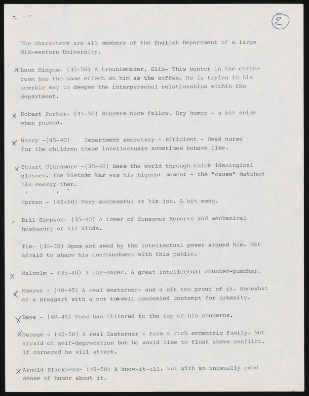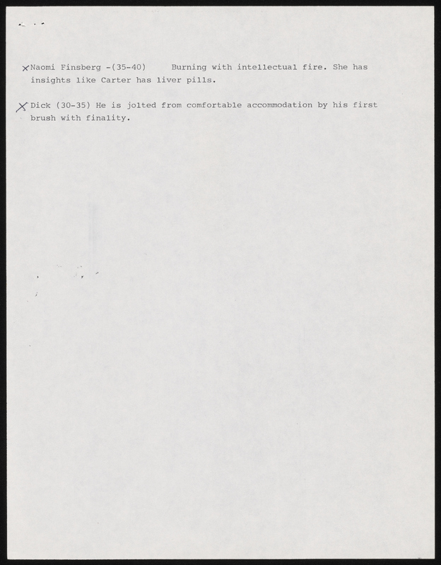 Elkin, Stanley. Letter. 1987. “The Coffee Room - Character List”, 1987, Stanley and Joan Elkin’s Artistic Kingdom, accessed February 11, 2026, https://digitalexhibits.library.wustl.edu/s/elkin/item/59101