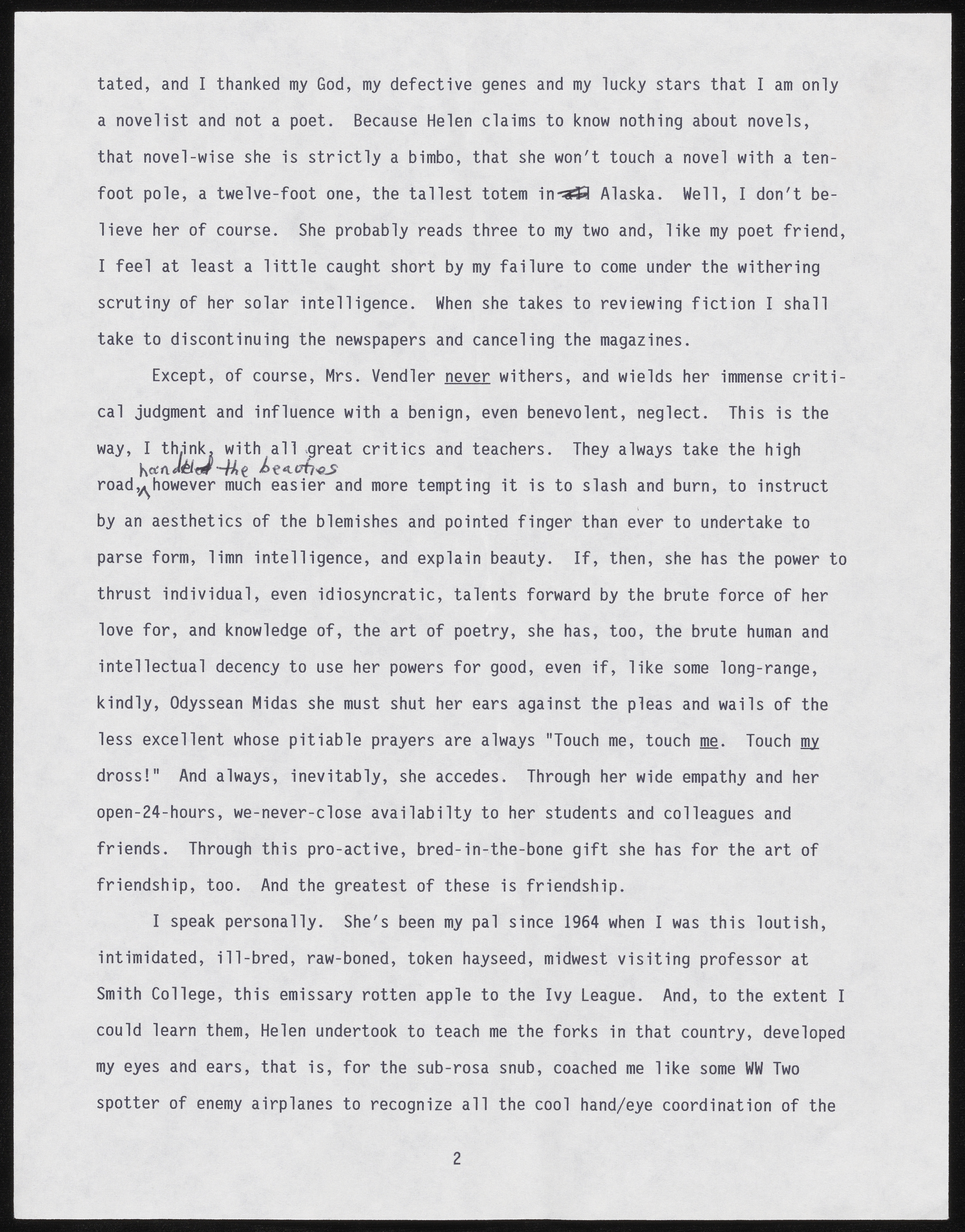 Elkin, Stanley. Letter. n.d. “Helen Vendler Introduction [speech].”, Stanley and Joan Elkin’s Artistic Kingdom, accessed February 11, 2026, https://digitalexhibits.library.wustl.edu/s/elkin/item/59273