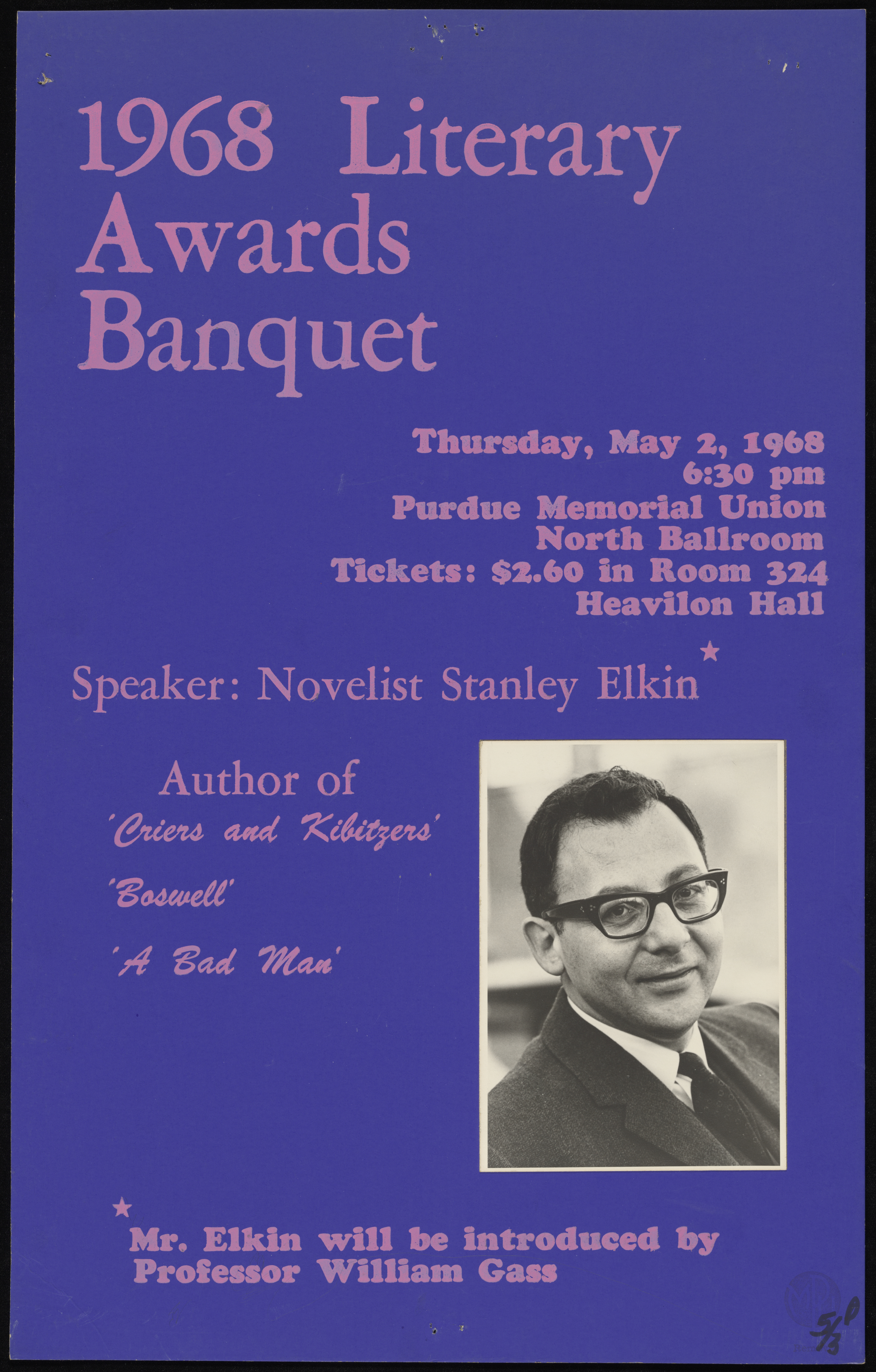 “1968 Literary Awards Banquet Poster”. Letter. 1968, 1968, Stanley and Joan Elkin’s Artistic Kingdom, accessed February 11, 2026, https://digitalexhibits.library.wustl.edu/s/elkin/item/59352