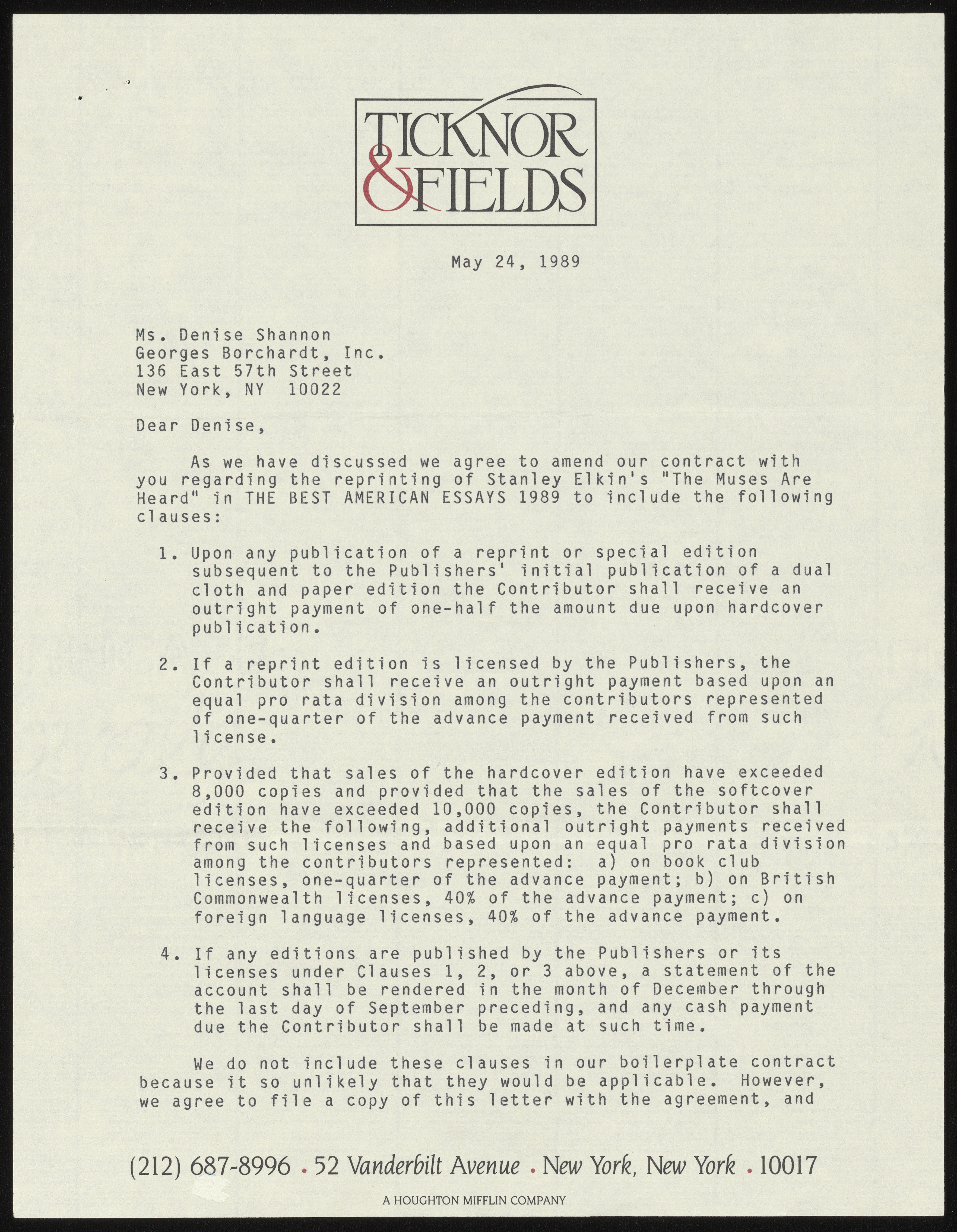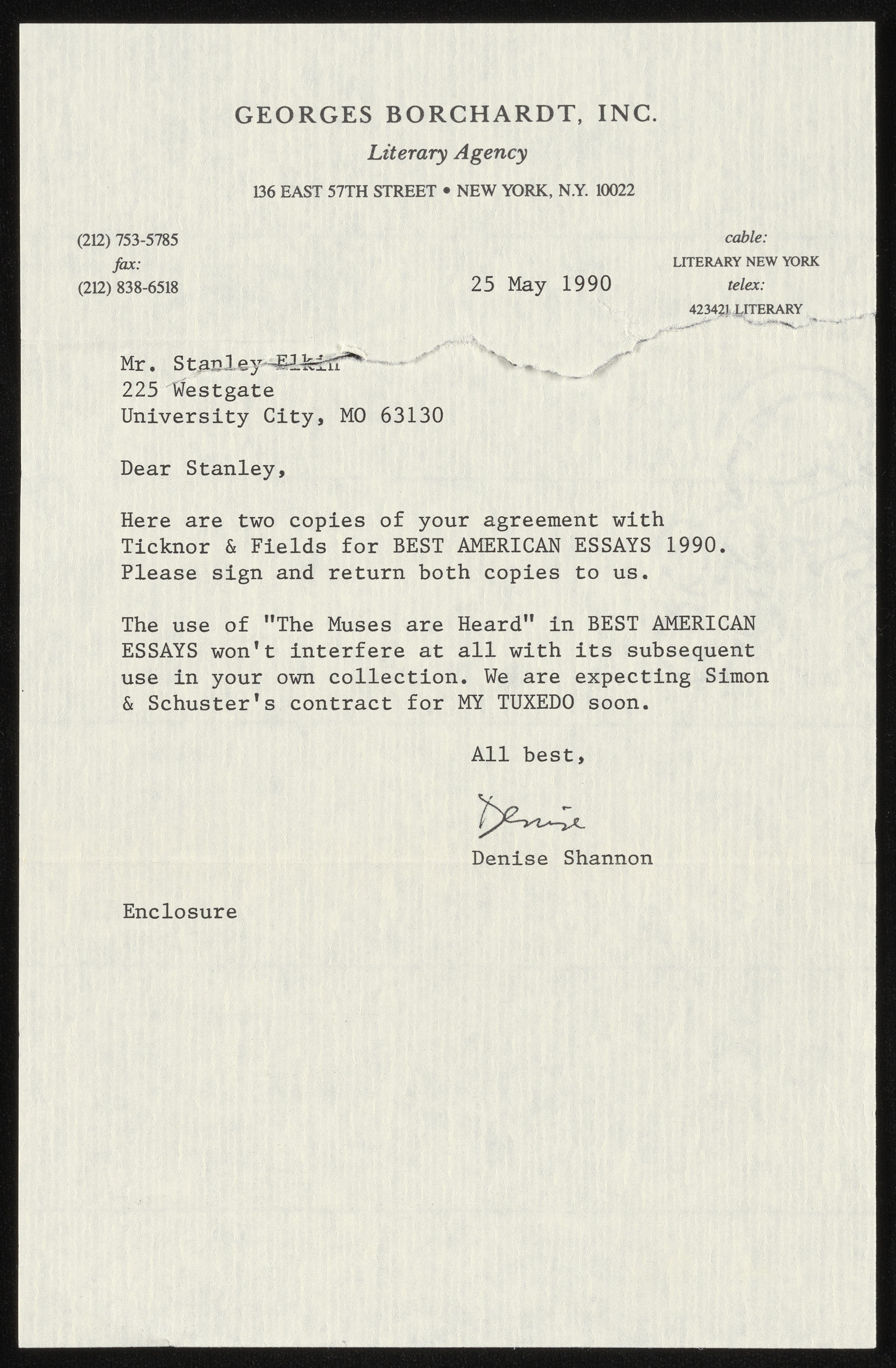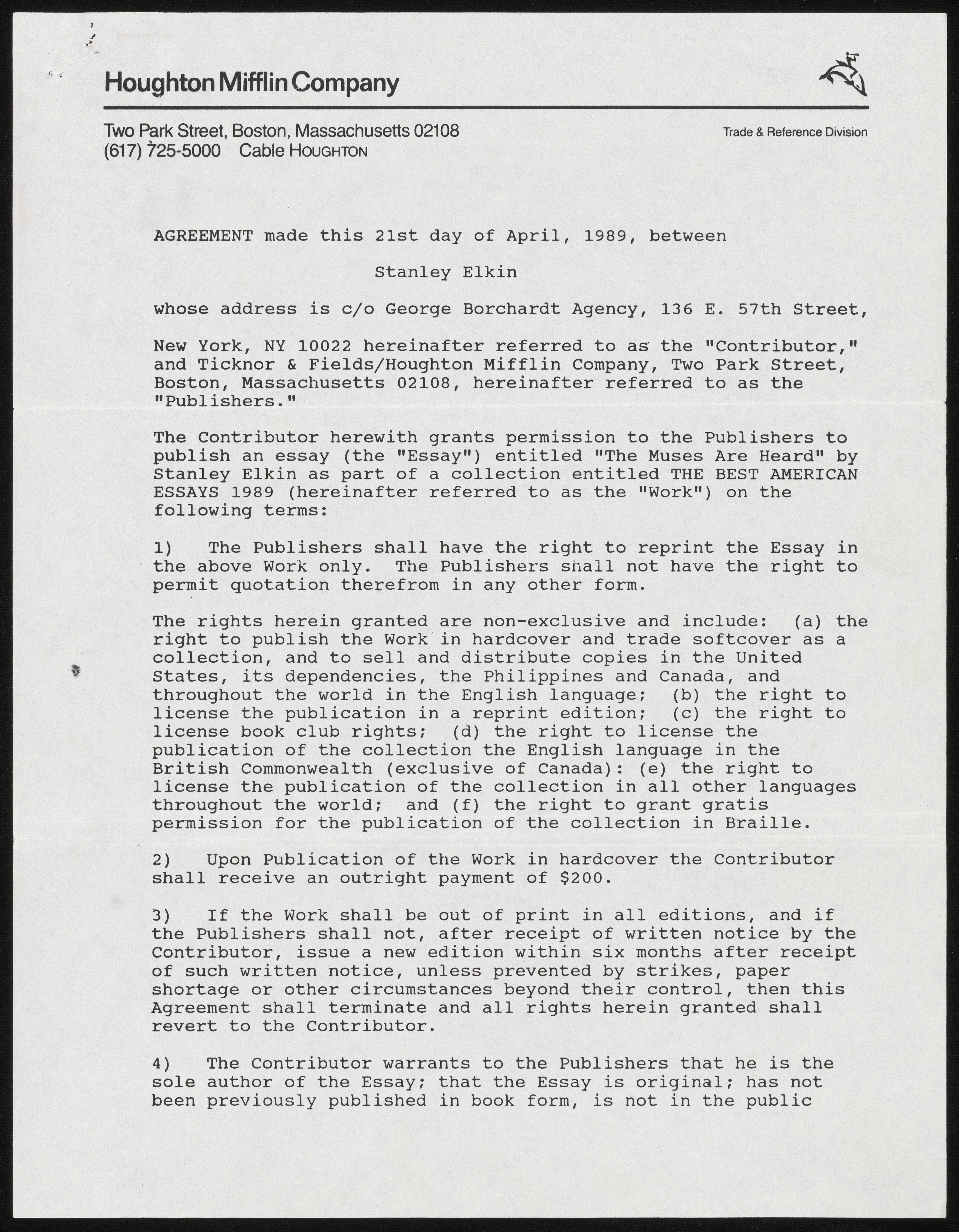 Atwan, Robert et al., “The Muses Are Heard - Contracts and Correspondence”, 1989-1992, Stanley and Joan Elkin’s Artistic Kingdom, accessed March 12, 2026, https://digitalexhibits.library.wustl.edu/s/elkin/item/59442