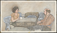 Stanley Elkin and Joan Elkin At Table Joan often accompanied Stanley on work trips, especially as his MS worsened. This painting captures them in conversation at Sewanee Writers Conference. -