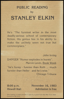 Invitations and Brochures - 1983 Broadside of "Public Reading by Stanley Elkin" inscribed "For Joan, with love, Stanley Elkin", Novelist in Residence at LFC Poster, and Spectrum Summer Writers Conference mailer. -
