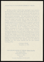 Van Gogh's Room at Arles - Press kit Advance praise cards, author photo, letter to book review editor, and folder promoting "Van Gogh's Room at Arles".