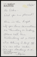 Engelken to Elkin Note from Regina Engelken in WashU's News and Information Office to Stanley Elkin with a draft of an article about Elkin's play "The Coffee Room" with autograph corrections. -