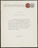 The Living End - Citation American Academy and Institute of Arts and Letters citation for "The Living End". -