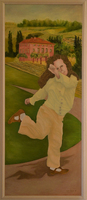 Molly Elkin Dancing Daughter Molly says this painting is from a photo of her dancing to Stanley singing “Run, rabbit, run, rabbit, run run run; Run, rabbit run rabbit run run run,” which he would sing faster and faster until it became too exhausting to keep up with the dancing and she would fall down. -