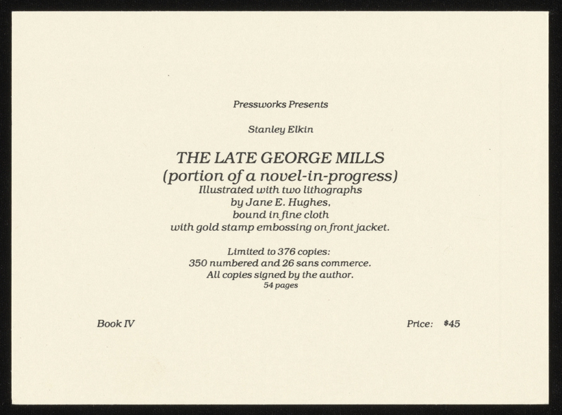 Elkin followed The Living End, a triptych of novellas which expanded his audience more than any other book, with his longest, most narratively complex novel. Crossing centuries and continents, Elkin spun narratives about patriarchs in the Mills family, who are all destined for mediocrity. George Mills employs a tapestry of perspectives and oral histories similar to William Faulkner, whose novels were the basis of Elkin’s dissertation, written over 20 years earlier. The book was widely praised by reviewers, and it earned Elkin his first National Book Critics Circle Award, but once again it wouldn’t be making an appearance on any best seller lists.
