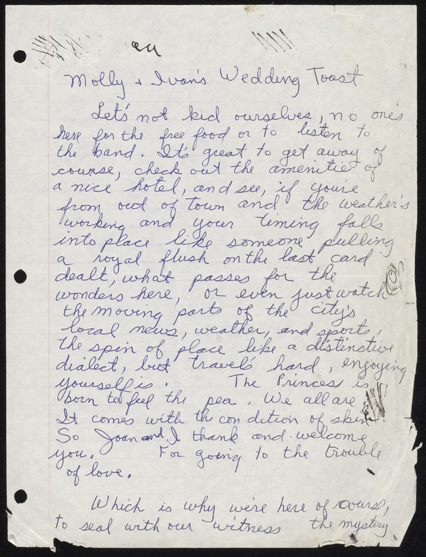 Toast for Molly Elkin and Ivan Wasserman’s Wedding