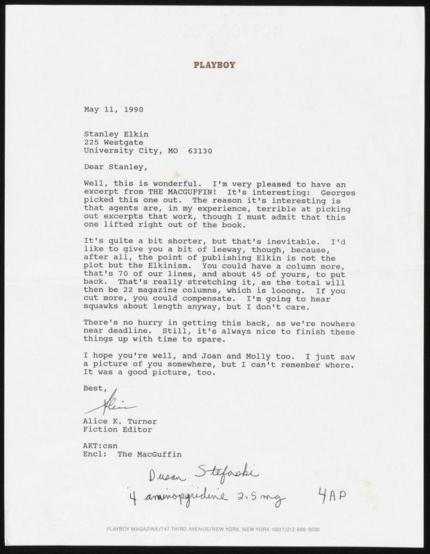 In Elkin’s eighth novel and third book to be a finalist for the National Book Award, the author created a familiar Elkin protagonist—a near-contender consumed by his vocation—but set hi8m in the unfamiliar Elkin world of city politics and murder mystery, albeit both with Elkin’s unique postmodern bent. In fact, The MacGuffin could be considered an anti-political novel in that it has no moral agenda, and an anti-detective novel in that it is one continuous internal narrative with an inconclusive ending. It is more a study of paranoia in a man losing his professional edge, something Elkin admitted he related to himself. His health was steadily declining due to MS and a weak heart.