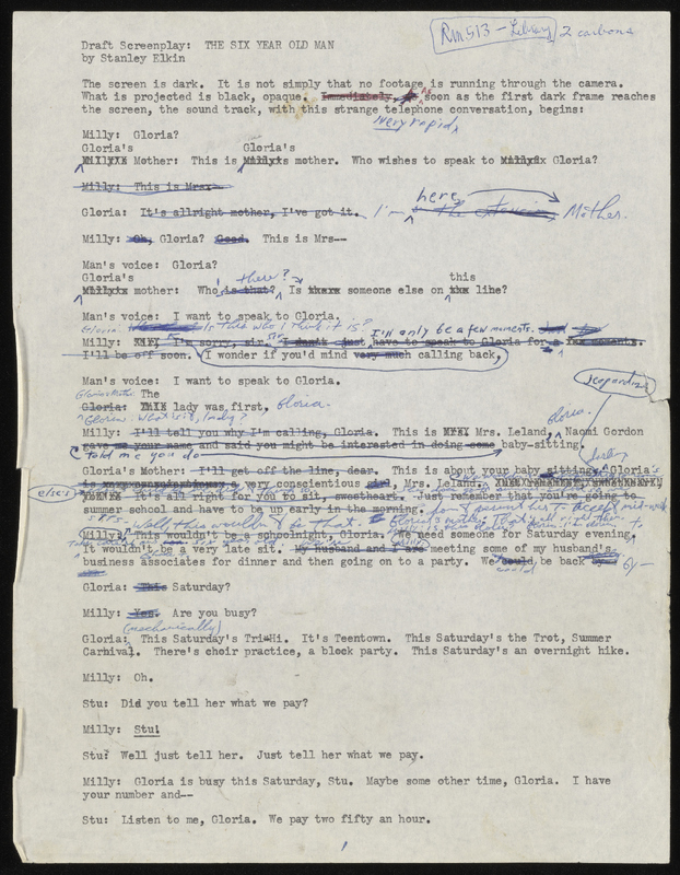 Against his editor’s advice, Elkin undertook his first serious attempt at screenwriting shortly after his second novel, A Bad Man, was published. It is the story of six-year-old Paul, who finds himself trapped in the body of a 35-year-old man. After frightening his babysitter, he sets off on a quest to find his parents. Failing to find a studio to produce it, Elkin allowed a heavily truncated version to be published in Esquire. Nineteen years later, Bamberger Books published the full text and Elkin wrote the introduction, also published in Pieces of Soap.