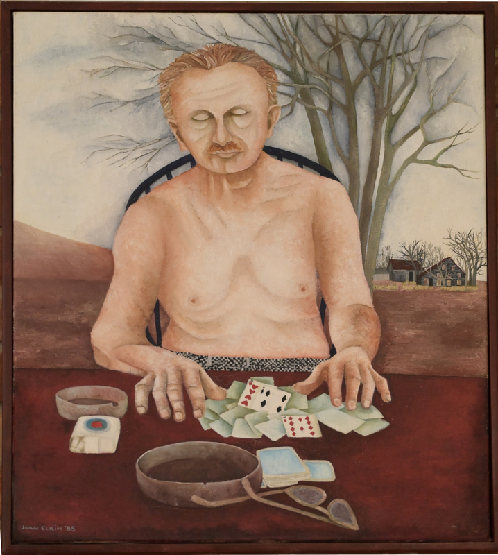 Oil, 1985. Joan told her daughter Molly that Ted, Joan’s father, rarely had his eyes open in any photo, so he is often depicted this way in her artwork.