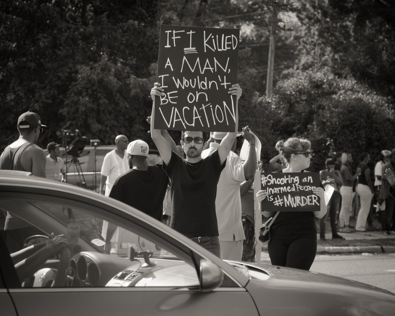 Protesters holding signs in the street. W. Florissant