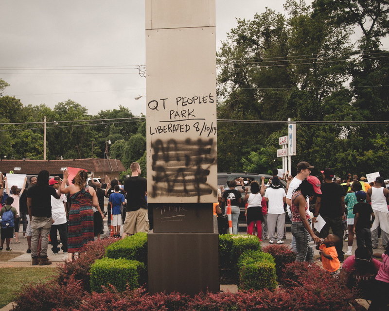 Mark Regester. “Words Written on Burned Out Quick Trip.”, Documenting Ferguson, accessed February 11, 2026, https://digitalexhibits.library.wustl.edu/s/ferguson/item/54961
